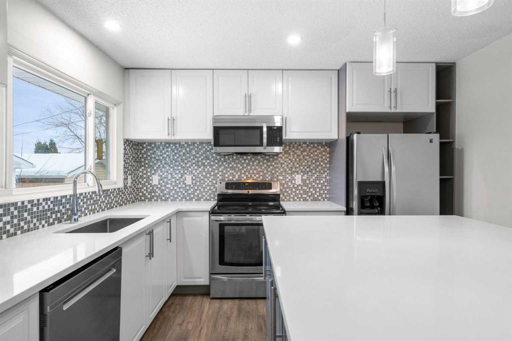 This renovated bungalow strikes the perfect balance of cozy charm and modern confidence, set on a quiet street with a wide back lane and just steps to the LRT. Located in the highly desirable community of Haysboro, this fully updated home offers 5 bedrooms, 2 full bathrooms, and outstanding versatility—ideal for families, first-time buyers, investors, or anyone upsizing or downsizing. It blends comfort, personality, and practicality in one move-in-ready package. Step inside to an OPEN CONCEPT main floor featuring a bright, spacious living room with large windows that fill the space with natural light. The modern kitchen offers new cupboards, timeless white cabinetry, newer appliances, quartz countertops, and a generous island perfect for cooking, serving snacks or wine, or gathering with friends and family. A cozy breakfast nook adds everyday convenience, and contemporary lighting enhances the fresh, inviting feel throughout. The main level includes three generous bedrooms, including a primary bedroom overlooking the private backyard, along with a newer 4-piece bathroom. This layout provides flexibility for families, guests, or a home office. The fully developed 858 sq. ft. basement is ideal for movie nights, workouts, recreation, or relaxation. It features two additional bedrooms, a comfortable family room, another full 4-piece bathroom, and a spacious laundry room. With five total bedrooms, the home easily supports multigenerational living or separate living zones. Outside, the HUGE PRIVATE BACKYARD is designed for enjoyment and entertaining. A built patio offers the perfect setting for BBQs or relaxing in the sun, while the large lawn provides space for kids, pets, gardening, or play. The oversized detached garage offers ample room for vehicles, tools, storage, and bikes. This home includes numerous upgrades such as a new roof, newer windows, renovated bathrooms, fresh finishes throughout, and a fully updated interior. With 1087 + 858 sq. ft. of bright, functional living space, the layout offers comfort and great flow. The location is exceptional—one block to the C-Train and minutes to Macleod Trail, Anderson Road, Heritage Drive, downtown, dining, and major amenities. Quick access to Southland and Heritage LRT Stations makes commuting effortless. Families will appreciate proximity to excellent schools including Haysboro Elementary, Woodman Jr. High, Henry Wise Wood High School, and Our Lady of the Rockies. Nearby pathways, parks, and the Glenmore Reservoir add to the lifestyle appeal. Everyday convenience is unmatched with Walmart, Canadian Tire, Southcentre Mall, restaurants, and community amenities close by. Haysboro is a vibrant, welcoming community offering parks, schools, shopping, a library, a community hall, and quick access to Glenmore Reservoir, Fish Creek Park, major roadways, and public transit. Stylish, flexible, and incredibly well-located, this renovated bungalow offers modern comfort, timeless design, and unbeatable neighbourhood.