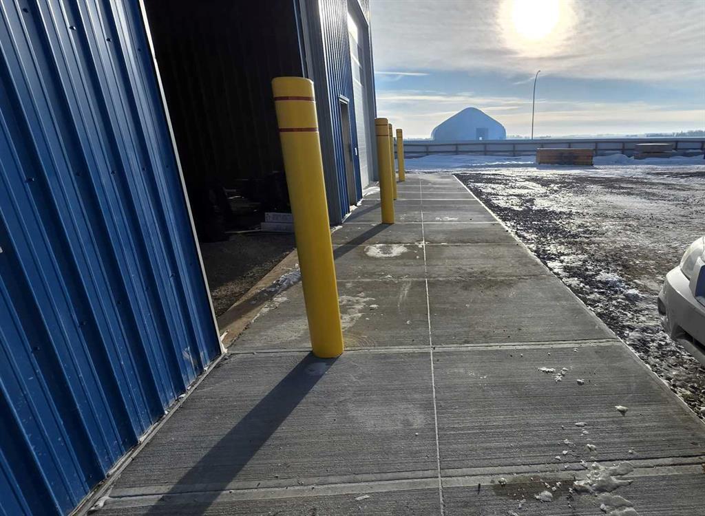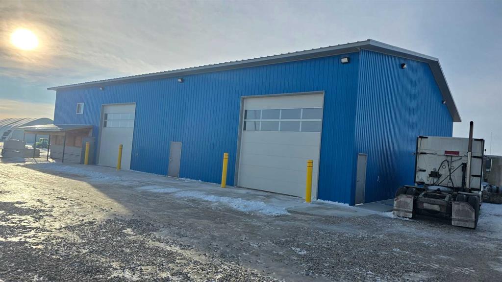 The building layout includes an eighty-by-twenty-five foot drive-through wash bay, an eighty-by-twenty-five foot contained welding bay, and an eighty-by-fifty foot main shop area planned to incorporate office space, lunchroom, washrooms, and generous shop space. Major components of the structure are already in place, allowing a purchaser to complete the remaining work to suit operational requirements.