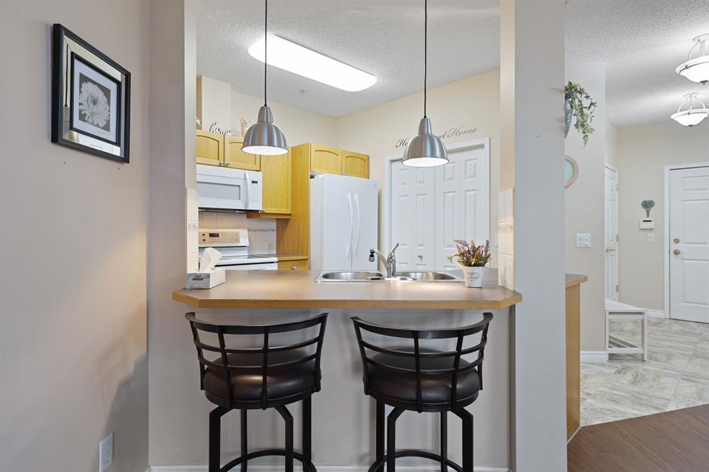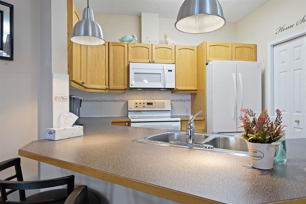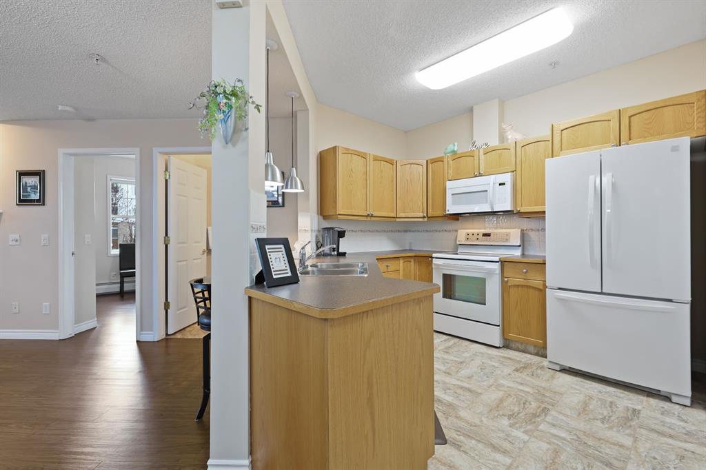 An exceptional opportunity to live in this bright and spacious 1188 Sq Ft outside corner unit, which features a large 20Ft x 8Ft covered patio with a natural gas Bar-B-Q included. This amazing condo features 2 bedrooms, 2 full bathrooms, a convenient den/hobby room, and caps it off with a laundry room as well! A Heated underground parking stall, storage unit, and heated visitor parking makes everyone happy! This unit welcomes you in with warm rich looking Vinyl Plank upgraded flooring. A spacious living room offers lots of windows and the comfort of a gas fireplace to keep you warm and cozy on those winter nights. Enjoy a light oak kitchen with ample cabinets, a sit up eating bar and a wonderful large pantry. With a nice size foyer, High Ceilings and in suite laundry, you have all you need in this condo. You have access to your deck from the bedrooms or the living room! Beacon Hill is a vibrant community with regular social activities including the amenity and games rooms, exercise rooms, carpentry shop and 2 guest suites. Don’t miss a Car wash too! The location is well connected to nature, pathways, LRT station, and major routes to Shopping, restaurants and many professional services. A wonderful place to call home!