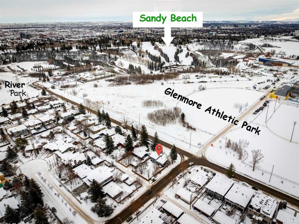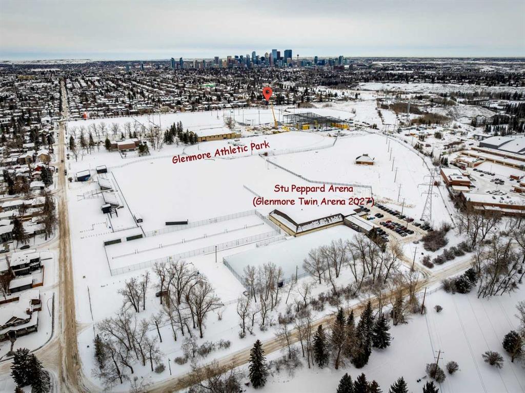 Offers subject to viewing. Incredible opportunity to redevelop this 63\'x121\' corner lot facing Glenmore Athletic Park and only steps to River Park, Sandy Beach and Altadore Elementary School. Zoned RCG, this property offers an array of redevelopment opportunities. This super solid 4-level split with a single attached garage and five bedrooms offers a very livable home (current owners have been here for 14 years). Hardwood floors, open kitchen with replaced cabinets, granite countertops, newer backsplash and stainless steel appliances. Renovations to both baths, a beautiful full-height fireplace in the living room, a finished lower level with two bedrooms, a family room, and a small gym/flex room. New roof, newer on-demand boiler, high-efficiency furnace and more. Excellent holding property or redevelop now. Note: The access road to Glenmore Athletic Park across the street will be permanently closed. Offers are subject to viewing. Offers are subject to viewing. No sign on property.