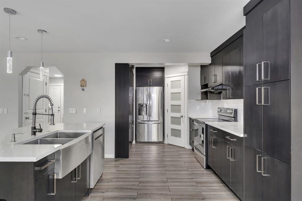 PRICED TO SELL!!! Welcome to this stunning fully upgraded east-facing 2-storey home in the desirable community of Saddlebrook, perfectly situatedbacking onto GREENSPACE, PARK AND SCHOOL. This elegant residence features 3 bedrooms, 2.5 baths, and a professionally finished basement witha separate entry. The main floor offers a spacious, sun-filled family room and a beautifully renovated gourmet kitchen complete with granitecountertops, a pantry, island, electric stove, and refrigerator. A charming dining nook overlooks the backyard, while the convenience of main floorlaundry and elegant ceramic tile flooring add to the home’s appeal. Upstairs, the luxurious primary suite boasts a walk-in closet and upgraded ensuitewith a multifunction shower panel and glass doors. Two additional bedrooms and a generous bonus room with a cozy corner fireplace complete theupper level, which features modern laminate flooring and no popcorn ceilings. The basement provides excellent versatility with a one-bedroom pluslarge den setup, a full kitchen, and a 4-piece bath—ideal for extended family or rental potential (illegal suite). Outside, the yard includes qualityconcrete work and a 10x10 storage shed, and the heated garage is equipped with a 50,000 BTU Big Maxx Mr. Heater and Costco panel storage foroptimal organization. Conveniently located near bus stops, Genesis Centre, Saddletowne C-Train Station, schools, and all major amenities, thisbeautifully upgraded home offers the perfect blend of comfort, style, and functionality. DON\'T MISS THIS OPPORTUNITY FOR OWNING THIS HOMEBACKING ONTO GREEN SPACE! BOOK YOUR SHOWING TODAY!!!
