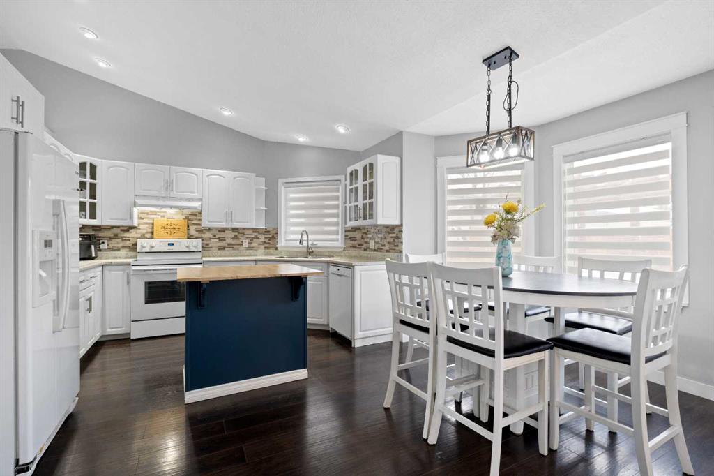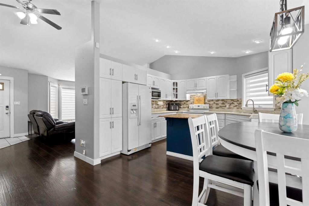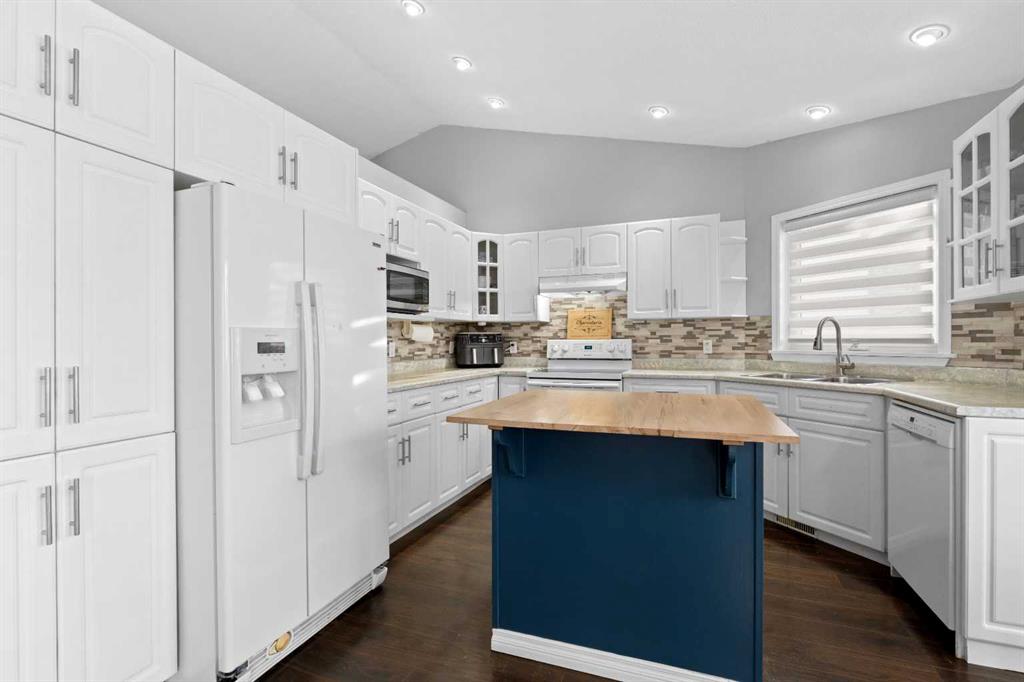 This home offers a practical layout suited for day-to-day living. Situated on a cul-de-sac and features immediate backyard access to a spacious, heated 28\' by 26\' detached garage with convenient back alley entry and additional adjacent parking. The main floor offers high ceilings, an electric fireplace in the living room, and an open kitchen with a floating island and backyard views, while the upper floor provides three bedrooms and two full bathrooms. Functionality continues on the lower levels, which include a large rec room with 9-foot ceilings, the home\'s third full bathroom, and laundry, plus two extra rooms and storage in the basement. The fully-fenced backyard enhances outdoor living with a greenhouse and hot and cold water taps.