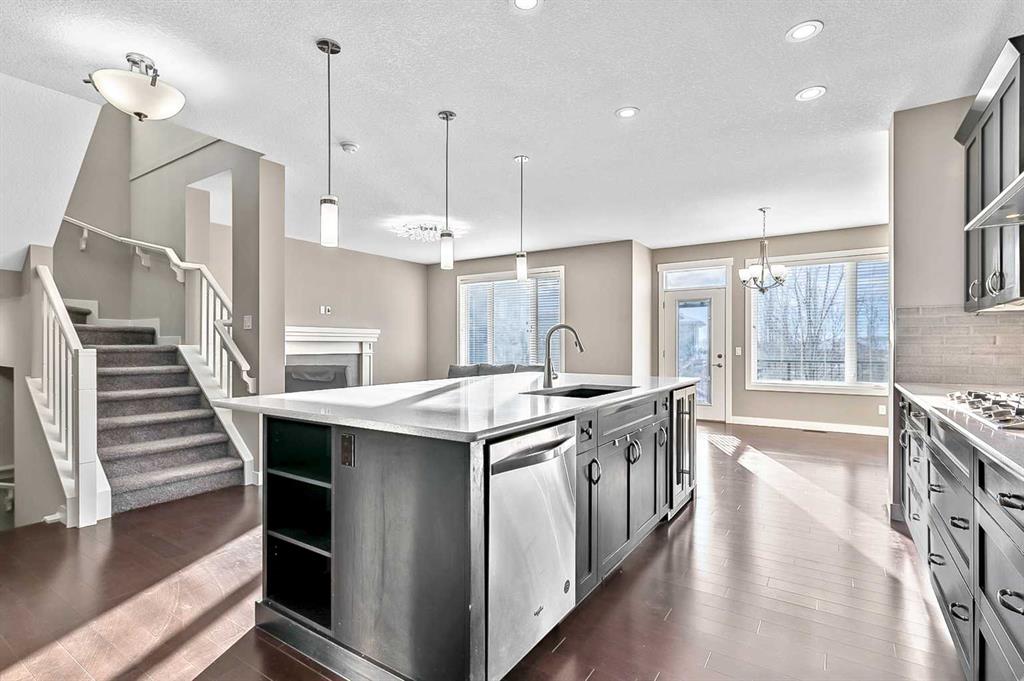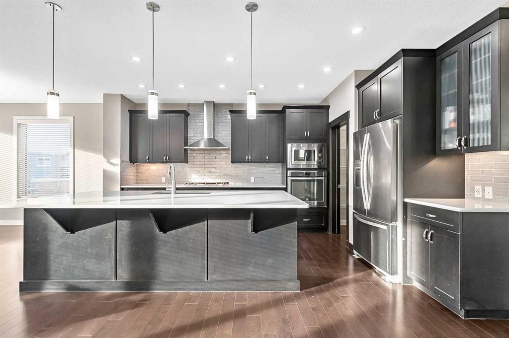 Welcome to 90 Mount Rae Heights in Mountain View! This beautiful 2429.5 sq. ft. (living space above grade), two-story home offers 4 bedrooms, a bonus room with skylights, plus an oversized double garage and is ready for you to move in. Showcasing a well-thought-out floor plan with no wasted space, the bright, open-concept layout, enhanced by NATURAL light flows seamlessly into each space through all the oversized, south-facing windows. Enjoy style and perfection throughout each floor: beautiful hardwood flooring an inspired family kitchen with an oversized, family-size island featuring a sink, wine fridge, built-in dishwasher & storage, premium stainless-steel appliances, 5 burner gas top, built in oven and microwave, sleek dark cabinetry, quartz countertops, a walkthrough pantry to the mudroom with a doggy shower, and access to the oversized double garage. The main floor also offers, a den at the front entrance, a living room with a stunning ceiling-mount light and a gas fireplace to cozy up to through the winter months. The dining room provides ample space to comfortably accommodate large family gatherings and access to the deck. The upper level features a spacious bonus room with skylights and a semi-vaulted ceiling. The primary bedroom includes a 5-piece bath and a walk-in closet—a perfect place to start or end your day. 3 more nicely sized bedrooms, a 5-piece bath, and a laundry room complete this level. The unfinished basement awaits your future development. All of this is located in a great location and a family neighborhood. This is a home to fall in love with and make it your New Year\'s wish!