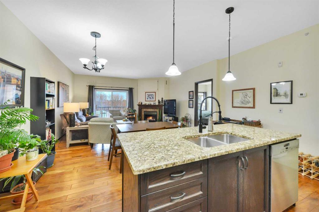Discover convenience, comfort, and affordability in this well-kept 2 bedroom, 2 bathroom condo in Bella Rosa 1 on Red Deer\'s South Hill. This bright home offers a practical layout with a large primary suite, a second bedroom and full bath, and a west-facing balcony to enjoy the evening sun. Hardwood flooring in the main living area adds to the executive touches throughout, including underfloor heat, corner fireplace and air conditioning.