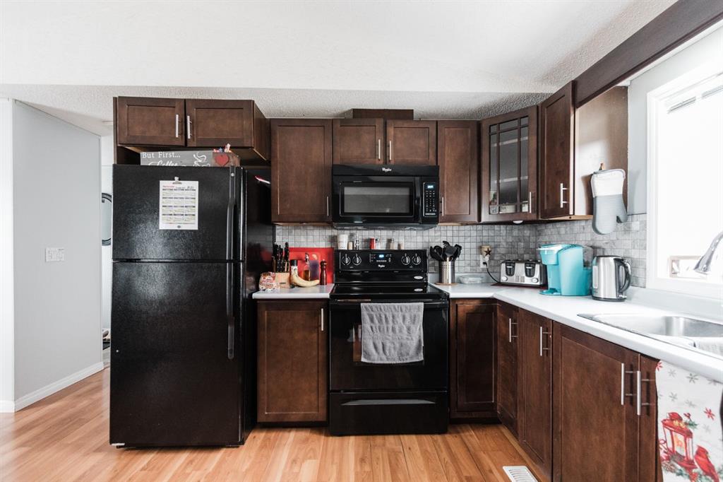 Inside, the home features a bright, open and comfortable layout with a spacious living room and dining room that can host the entire family. The kitchen has been refreshed with a tile backsplash, black appliances, and updated lighting in both the kitchen and dining area. There is plenty of counter space for cooking, hosting, or meal prep. The laundry room is tucked away with extra storage and includes a water softener for added convenience.