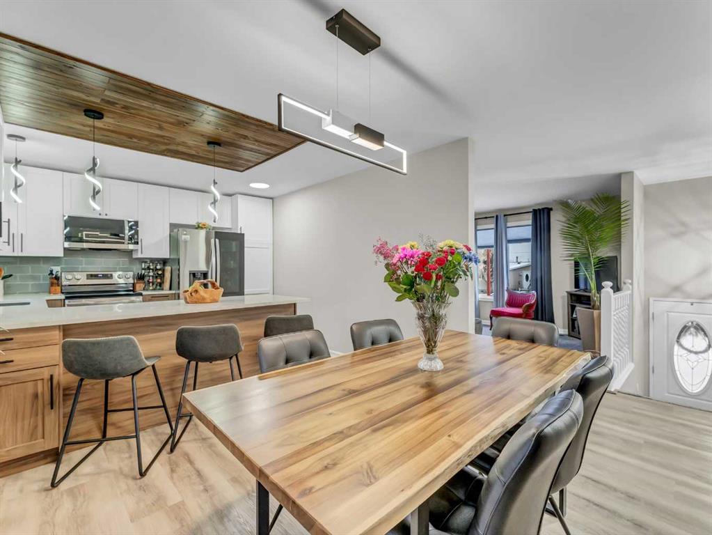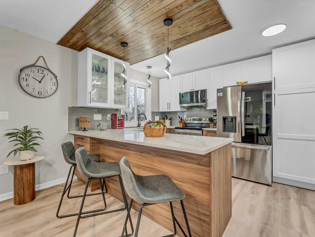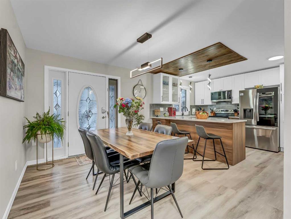 This warm and welcoming 4-bed, 2-bath home has been thoughtfully updated over the past couple of years, making it truly move-in ready. This home has just over 1800 sq ft of livable space! The bright, inviting kitchen—is complete with quartz countertops, modern appliances, and soft-close cabinets—an easy place to imagine gatherings with friends and family. An extra bonus is having it open to the dining space and covered deck. Updated flooring, paint and lighting add a fresh, stylish feel throughout. Every window has been replaced, offering peace of mind and helping keep utility costs low. Just off the dining area, a large covered deck extends your living space outdoors—perfect for relaxing on rainy afternoons or hosting summer BBQs. The backyard features a double heated garage, RV parking, and a cozy fire pit. With lower taxes in Redcliff, you can enjoy even more value. The roof is only 4 years old, and the hot water tank was replaced last year.