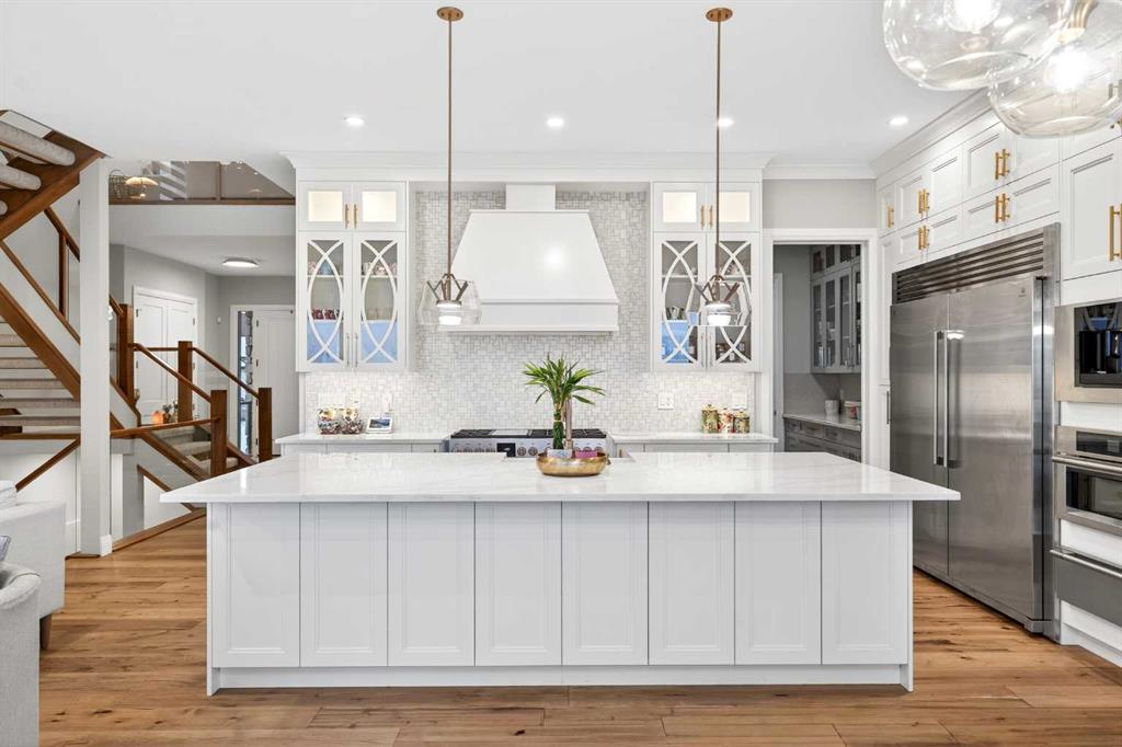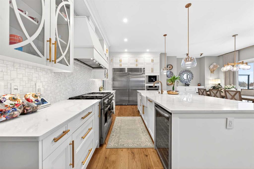 Experience luxury and comfort in this 2-storey walkout Hamptons home, nestled on a quiet cul-de-sac, backing onto a walking path and offering Unobstructed view of the North. Boasting over 4,800 sq.ft. of sophisticated living space, this home is designed for both entertaining and family living.