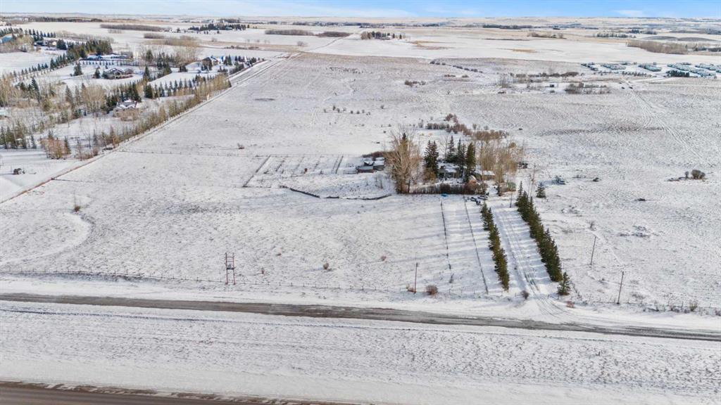 This is a rare, high-exposure 11.19-acre development site at the absolute north gateway of Okotoks, positioned just east of Highway 2A along the paved sub-road at the first set of lights entering town. Elevated topography delivers commanding, unobstructed mountain views—an increasingly scarce and premium feature—while mature spruce trees create a private, park-like setting. Offered strictly as land value with the residence included at no cost, this parcel is surrounded by established and expanding infrastructure including schools, commercial uses, golf courses, and residential neighbourhoods, all within walking distance, and supported by a new signalized intersection for safe, efficient access. With visibility, access, views, and growth already in place, this irreplaceable gateway parcel offers immediate and long-term upside for commercial or mixed-use development.