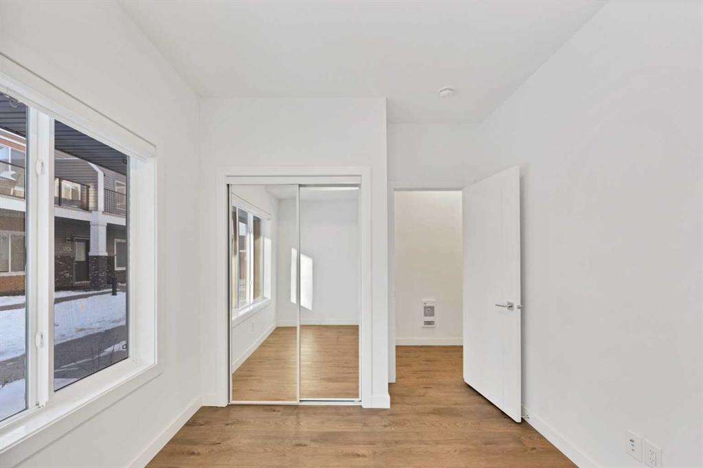 Experience elevated living in this beautifully designed 4-bedroom townhome located in the vibrant, family-friendly community of Chelsea. With scenic walking paths, playgrounds, and convenient shopping just steps away, this home offers an ideal blend of comfort and convenience. Inside, you\'ll find 4 spacious bedrooms, 2.5 bathrooms, and an attached double heated garage—perfect for Alberta winters. The main floor includes a versatile bedroom that can serve as a guest room, home office, or creative workspace. Thoughtful upgrades are featured throughout, including luxury vinyl plank flooring, high ceilings, and stylish modern finishes. The chef-inspired kitchen is a standout, showcasing full-height soft-close cabinetry, quartz countertops, stainless steel appliances, and a functional pantry. Whether you\'re entertaining at the eat-up island or preparing everyday meals, this kitchen is designed to impress. Upstairs, the primary suite provides a relaxing retreat with a large walk-in closet and a private 4-piece ensuite. Two additional bedrooms, a 4-piece main bathroom, and convenient upper-level laundry complete the second floor for added everyday comfort. Bright, modern, and move-in ready, this townhome offers the low-maintenance, sophisticated lifestyle. Don’t miss your opportunity to make this exceptional home yours!