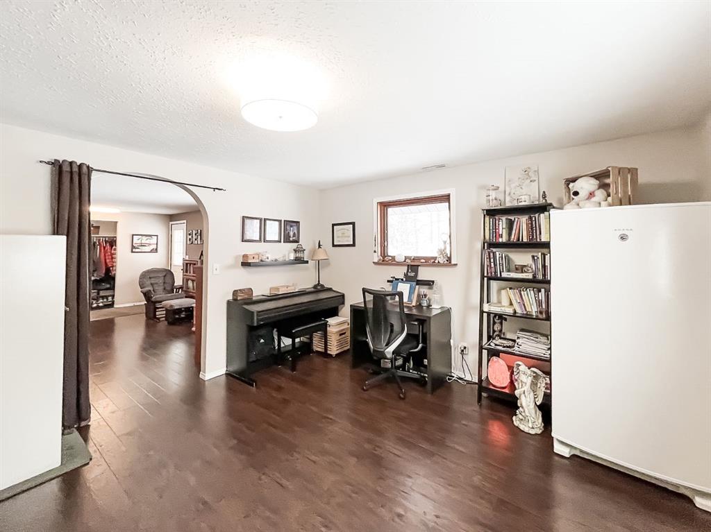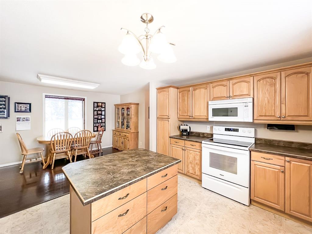 Welcome to your dream retreat on this picturesque 4.39-acre property! This charming 3-bedroom, 2-bathroom home perfectly balances comfort and functionality. The spacious kitchen is a true centerpiece, with an eat-at island, corner pantry, ample cupboard space, and generous countertops for meal prepping. It seamlessly flows into a bright dining area and cozy living room, featuring a homework station nook. The main floor includes a versatile bonus room and a 3-piece bathroom with laundry for convenience. Upstairs, unwind in the expansive primary bedroom with a walk-in closet and direct access to a 3-piece bathroom with a large soaker tub. Two additional large bedrooms and a dedicated office space provide plenty of room for family or work-from-home needs. The property also boasts a remarkable 60\'x40\' shop, equipped with concrete floors, radiant heat, 220V power, and a spacious 14\' high, 18\' wide overhead door for easy access. A second 8\'x9\' door and over 580 square feet of mezzanine space add even more versatility for storage or workspace. Attached to the shop is a 72\'x20\' cold storage lean-to with a 9\'x6\' overhead door, perfect for equipment or additional storage. Tucked away amidst mature trees, this property provides exceptional privacy and a peaceful, serene atmosphere. Enjoy outdoor living with a fenced-in dog run, a cozy fire pit for evening relaxation, and a garden space ideal for those with a green thumb. A convenient shed is available for tools or extra storage. With its combination of space, comfort, and natural beauty, this property provides the perfect setting for your next chapter. Schedule your showing today!