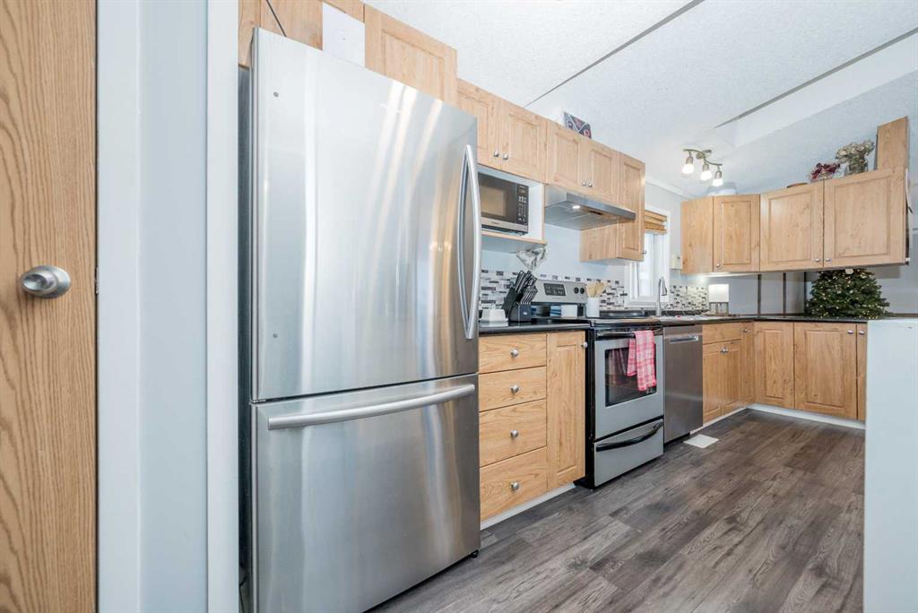 Stop paying rent and start building equity with this well-kept 3-bedroom, 2-bath home where you own the lot. The primary bedroom features a walk-in closet and private ensuite, while vaulted ceilings and a skylight create a bright, open feel throughout the main living space. Quality interior finishes include hardwood flooring in the living room and warm oak cabinetry in the kitchen. Step outside to a spacious, fully fenced and landscaped backyard complete with a large 13\' x 18\' deck—perfect for relaxing or entertaining. A matching 12\' x 16\' powered shed offers excellent storage or workspace options. Located close to schools and parks, this home delivers the benefits of lower county taxes and small-town living, all while being just 12 minutes from the city. An ideal and cost-effective alternative to renting—own your home, grow your equity, and enjoy long-term value.