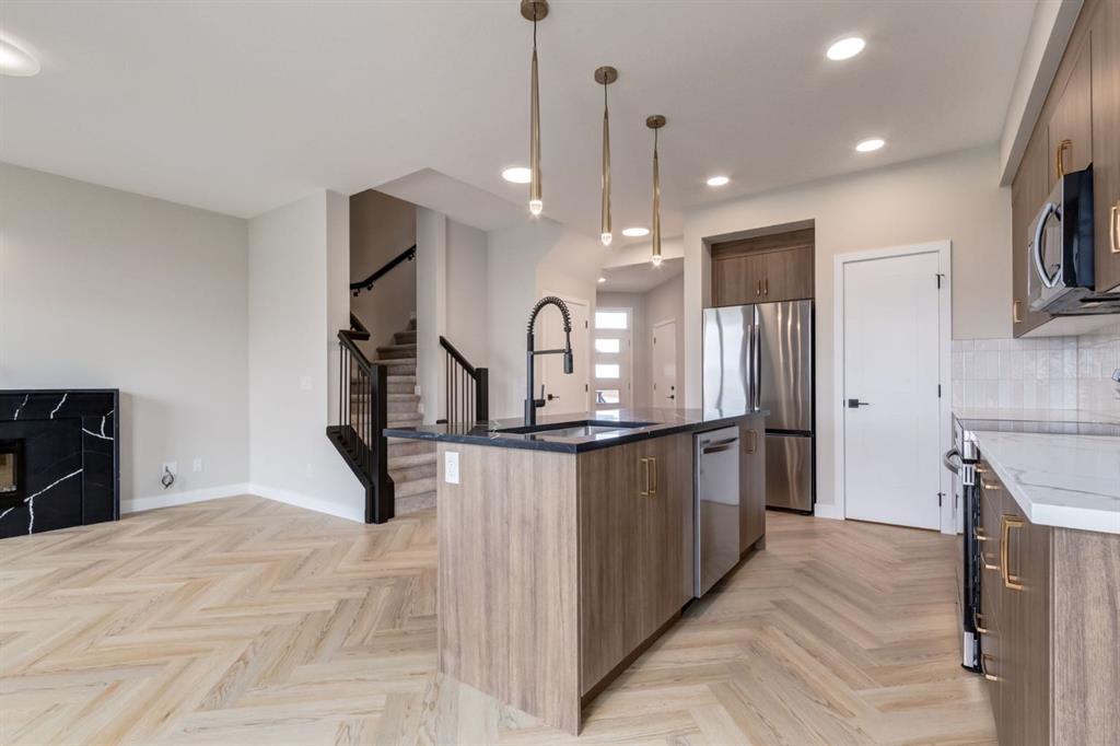 QUICK POSSESSION! Brand new The \"LANDON\" half duplex by Rohit Homes, with unmatched design interiors and striking exteriors to create elevated living. Featuring 1,617 sq ft, 3 bed/2.5 bath + bonus room, double front attached garage and separate entrance to basement. Note: this unit will be ready for possession in 2026. All Perfectly located In SE Calgary\'s \'Sora in Hotchkiss\', close to a park, featuring a pond, paths, easy access to major highways and more. Step inside to an expansive open floor plan that seamlessly connects living/dining and kitchen. KITCHEN FEATURES: SS appliances, quartz counters, large island (with place for bar stools), designer cabinets, boutique lighting - a perfect place to gather and create masterful meals. Off the kitchen is the dining, mud room, living room and half bath. The plan offers large windows across the back, and with the high ceilings as well as open floor plan, it leaves the home feeling bright and inviting. Upstairs, find 3 good size bedrooms, bonus room, laundry, 2 full baths. The primary retreat includes a walk in closet, and spa like retreat full en-suite. Ensuite features: Single vanity, window, bath/shower combo, quartz counters and beautiful tile work. The lot features alley access in the back. Located just outside the ring-road, east of Stoney Trail, offering quick access to highways and other amenities on the southeast side of Calgary. All pictures and 3D tours are of the floorpan that is completed, your unit may have different (colors/finishings/spec upgrades/design interior/elevation) depending on Lot - confirm with builder. At Rohit Homes, we know it’s not just about having a functional floor plan, it’s about having a space that you’re proud to show off. Each of our homes features a distinct look that is inspired by you - our customers. Built by a 4-time Home Builder of the Year with Peace-of-mind 1-2-5-10 year new home warranty. Unparalleled level to townhome living awaits. Note: The listed price includes GST - The First-Time Home Buyers\' GST Rebate could save you up to $50,000 on a new home! You must be 18+, a Canadian citizen or permanent resident, and haven\'t owned or lived in a home you or your spouse/common-law partner owned in the last four years. Terms and conditions are subject to the Government of Canada/CRA rules and guidelines. *Visit show home at 318 sora way SE Calgary mon-thurs 4-7pm, sat/sunday 2-5pm. Self guided tours available outside those times!