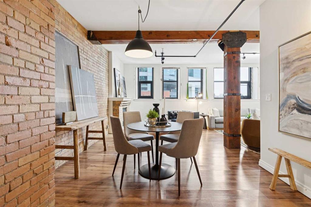 Nestled in the heart of Calgary\'s Beltline, this extraordinary red brick loft offers a rare opportunity to own a piece of the city’s rich history. Constructed in 1912 for the Imperial Tobacco Company by the renowned A. Dale and Associates, the architectural firm behind the iconic Calgary Tower, this building underwent a stunning conversion to lofts in 1995. For the first time ever, these timeless residences are available for sale, blending historical charm with modern sophistication. Offering over 1,100 SqFt, this expansive loft exudes character with its original brick walls, exposed wood beams, and soaring ceilings. A wall of windows floods the space with natural light, creating a warm and inviting ambiance reminiscent of a classic New York City loft. The open-concept layout is thoughtfully designed, offering endless possibilities for both living and working. A private den provides the perfect space for a home or business office, while two generously sized bedrooms are complemented by a five-piece Jack and Jill bathroom plus there is an additional three-piece bathroom. The galley-style kitchen features freshly sprayed maple cabinetry with under mount lighting, moveable island, and a seamless flow into the dining and living areas. Whether you envision this space as your personal sanctuary or a dynamic live/work environment, the possibilities are as limitless as your imagination. Beyond the loft itself, the building offers an array of amenities, including a gym, a games room, and a rooftop patio with breathtaking views of the Downtown Skyline. A titled underground parking spot is also included, ensuring convenience in this vibrant urban setting. This is more than a home; it’s a lifestyle. A rare blend of history, elegance, and modernity, this loft is a once-in-a-lifetime opportunity to own a truly unique piece of Calgary’s architectural heritage.