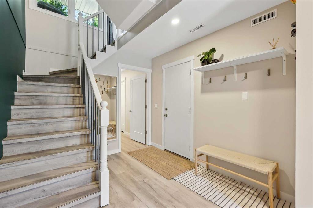 West side living under $500K! Welcome to the enchanting community of Coach Hill, where this charming and eclectic home in Coachway Gardens is updated, move-in ready, and offers 3 bedrooms and 2.5 baths across 1,568 sq ft of fully renovated living space. Step inside to a spacious foyer featuring a stylish 2-piece powder room, practical front closet, and convenient laundry room. The main level is bright and airy, enhanced by large updated triple-pane windows that flood the home with natural light. The cozy living room showcases a corner gas fireplace with a brick surround, creating the perfect place to relax. At the heart of the home is the gourmet-inspired kitchen, blending eclectic charm with modern flair. White custom cabinetry pairs beautifully with quartz countertops and a large central island. Samsung stainless steel appliances include a flat-top convection stove, bottom-freezer refrigerator, dishwasher, and over-the-range microwave hood fan. A built-in beverage fridge, dual sink with pull-out faucet, and LED multi-colour, remote-controlled cabinet lighting complete the space. The formal dining room adds elegance with a built-in buffet offering both charm and extra storage. Upstairs, you’ll find three generously sized bedrooms with newer carpeting and ample closet space. The renovated main bathroom features a tub/shower combination, while the primary ensuite offers a sleek 3-piece layout with a spacious shower. Additional highlights include a well-maintained furnace, newer hot water tank, and all Poly-B plumbing replaced with PEX. The well-managed complex has future upgrades planned, including new siding. Parking is a breeze with an attached single garage, driveway space for a second vehicle, and nearby guest parking. Ideally located just off Old Banff Coach Road, this desirable Coach Hill home offers quick access out of town and is only 15 minutes to downtown, with nearby restaurants, schools, and shopping. This move-in-ready west side gem won’t last—book your showing today.