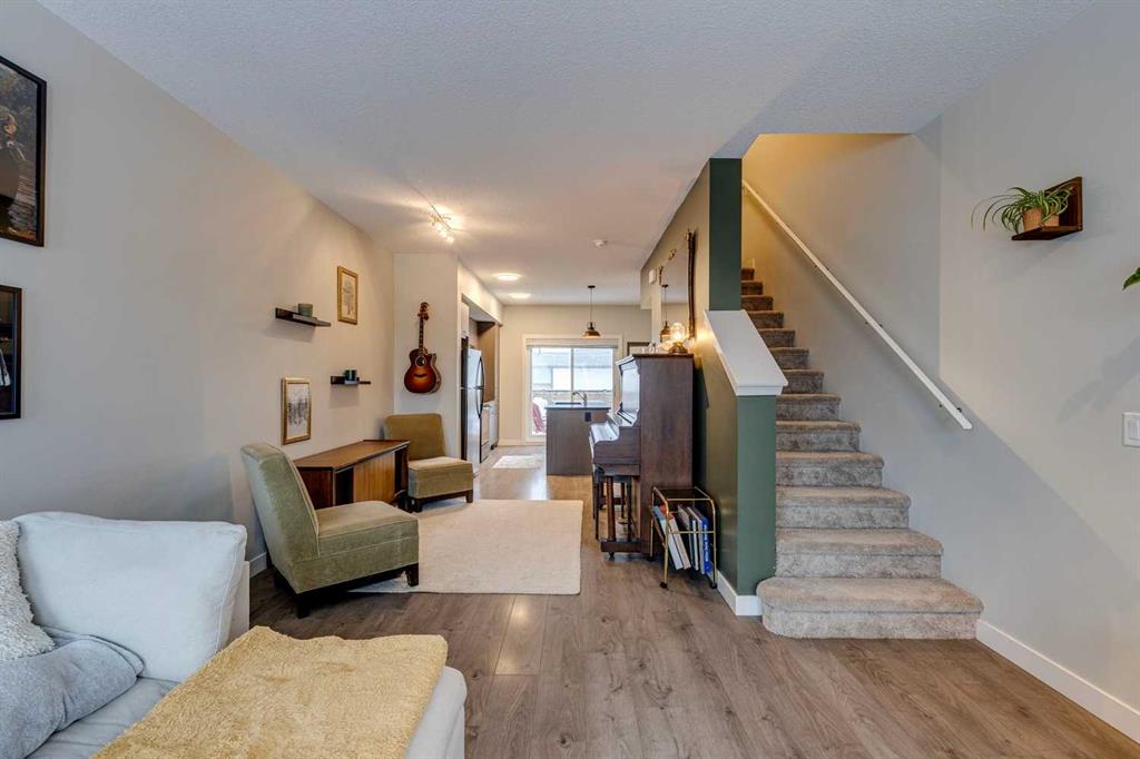 Welcome to 2103 Jumping Pound Common in Cochrane\'s sought-after Jumping Pound Ridge, where LOW CONDO FEES deliver exceptional value for modern, carefree living! Nestled just steps from Jumpingpound Creek and scenic walking trails, this impeccably designed 2017-built three-storey townhouse spans 1,280 sq ft of bright, inviting space, boasting two generous bedrooms, one full bath, one half bath, and a flexible den on the main level—perfect for a home office, workout area, or guest retreat. Ascend to the open-concept second floor, where a gourmet kitchen with sleek granite countertops, ample cabinetry, and premium appliances flows seamlessly into the living area, illuminated by abundant natural light and leading to a spacious balcony with gas line for effortless BBQs and outdoor enjoyment. Upstairs, the primary bedroom accommodates a king-size bed with ease, complemented by a second bedroom, full bathroom featuring a deep soaker tub, and convenient in-unit laundry. Finished with an insulated attached garage offering extra storage, this well-cared-for gem provides year-round appeal— from summer adventures along the Bow River to winter fun on Cochrane\'s top sledding hill, all near playgrounds, schools, shops, and quick access to Calgary. Seize this all-season haven—call a Realtor now to schedule a viewing!