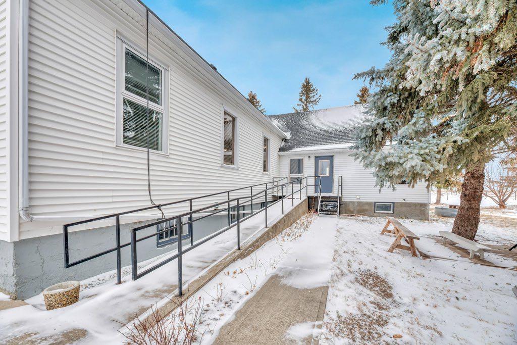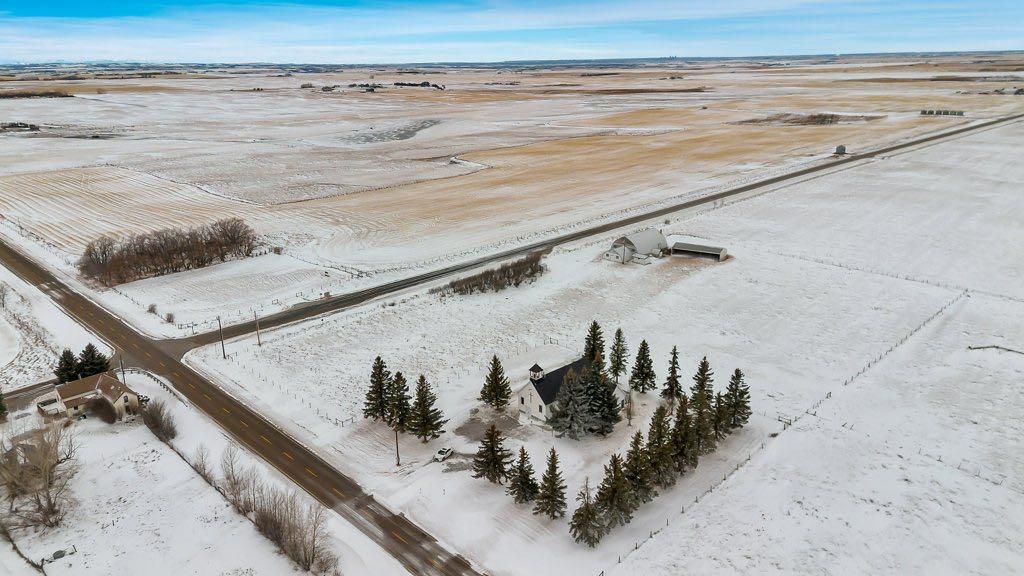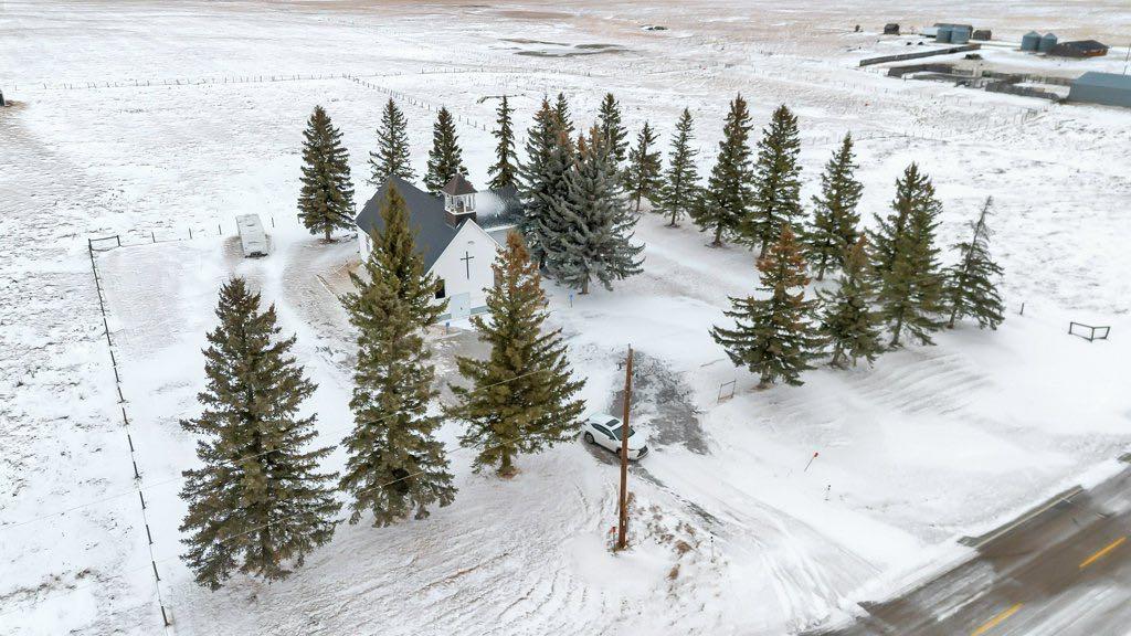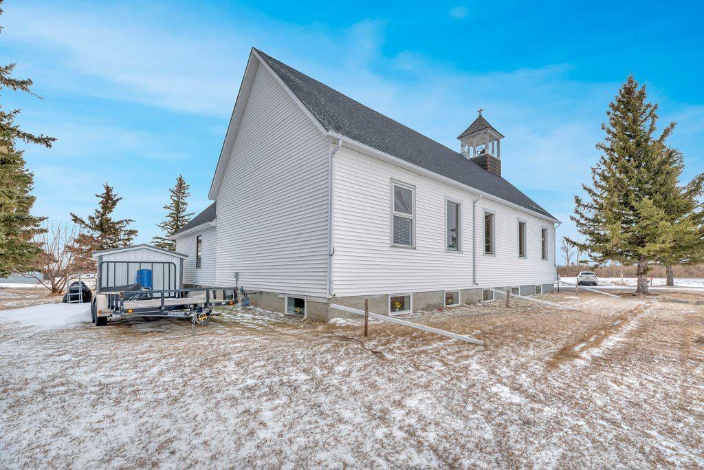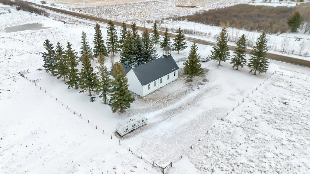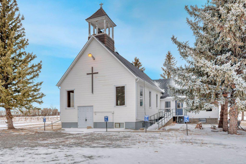 An exceptional one-acre property is offered for sale, featuring the historic Gladys United Church. Located east of Okotoks and Secondary Highway 547, this site combines history, space, and accessibility. The land was donated in 1911, with the church constructed shortly thereafter. In 1950, the building was relocated onto a new concrete foundation, and a substantial addition was completed after.The church provides over 4000 sq.ft of space. The main floor includes a spacious meeting hall, sitting room, office space, and a two-piece washroom. The basement is equipped with a kitchen, men & women washrooms, a large dining or gathering area, and ample storage.