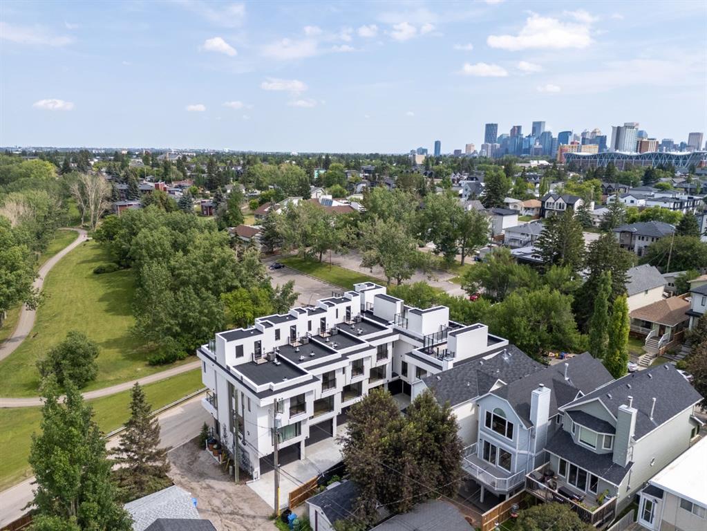 A rare opportunity to acquire an entire luxury 8-unit townhome complex directly fronting Confederation Park in coveted Capitol Hill. Century Park Townhomes were originally built for ownership and deliver exceptional craftsmanship, premium materials, and timeless architecture. Each unit features chef-inspired kitchens with gas ranges, floor-to-ceiling tile bathrooms, gas fireplaces, solid-core doors, and attached garages. Private rooftop patios include gas, electrical, and drainage rough-ins, with many units offering unobstructed park views. Heated driveway pads provide effortless year-round access. Six unique floor plans range from 2–4 bedrooms, with flex/den options ideal for executive tenants. This turnkey luxury rental asset offers outstanding tenant appeal, immediate possession, and an irreplaceable inner-city location minutes to downtown, SAIT, U of C, and major amenities.