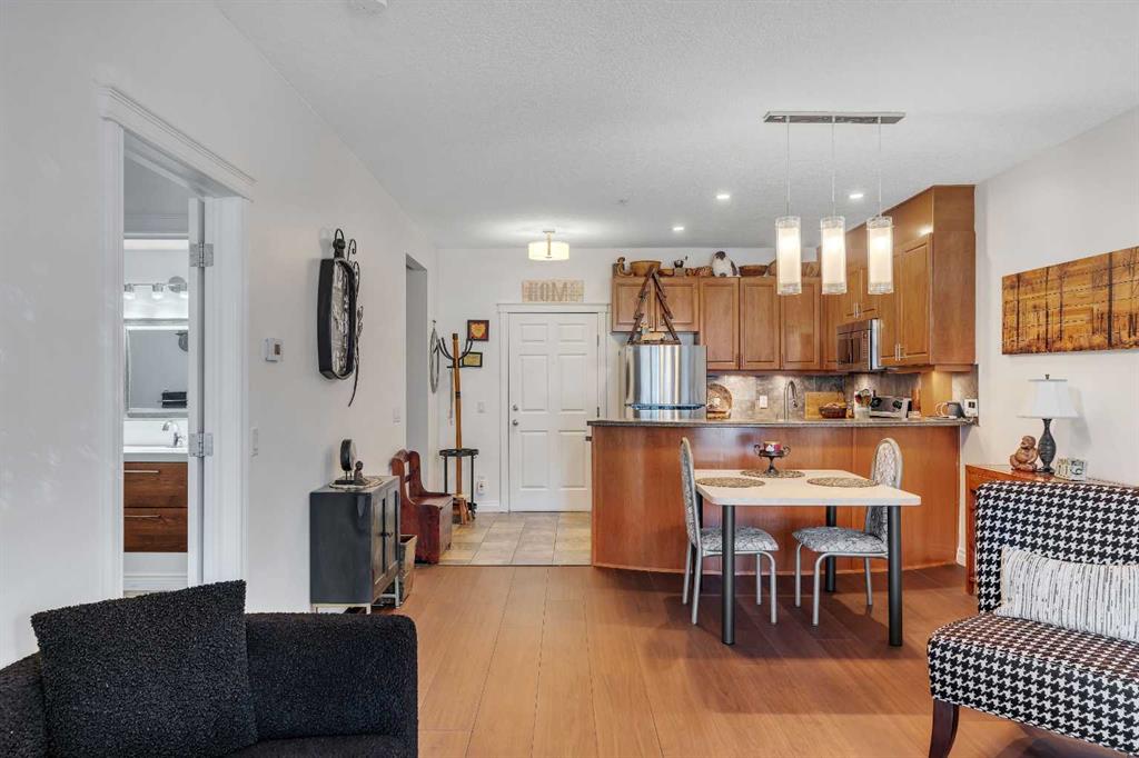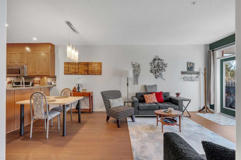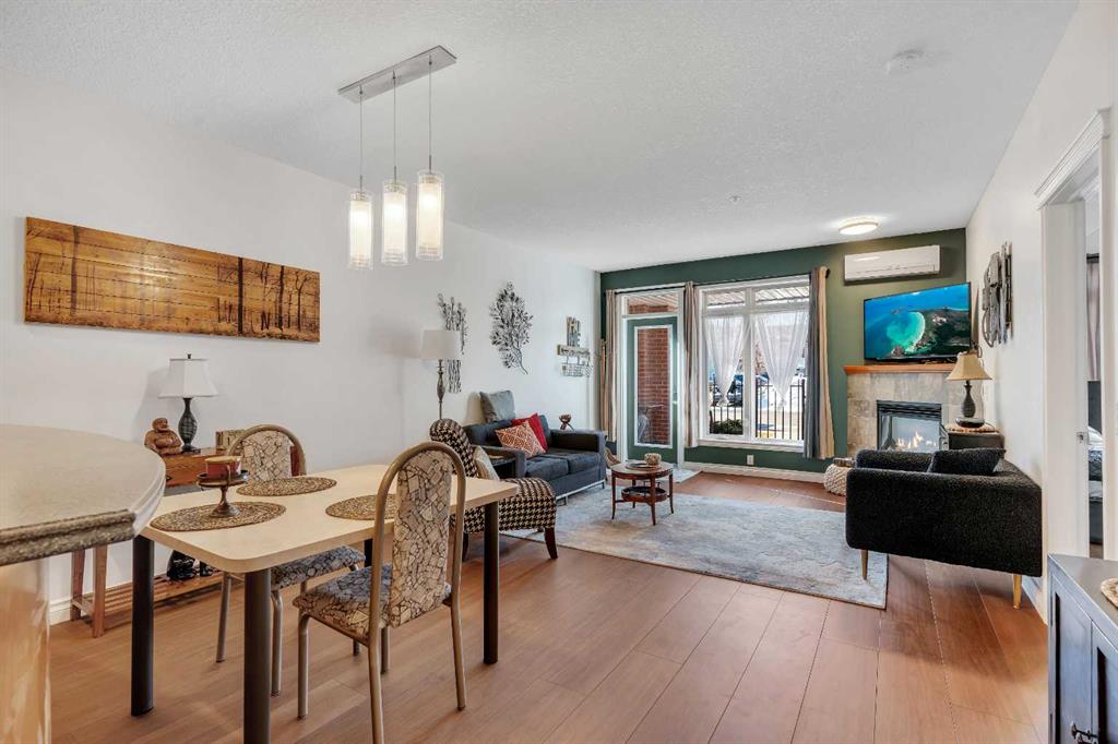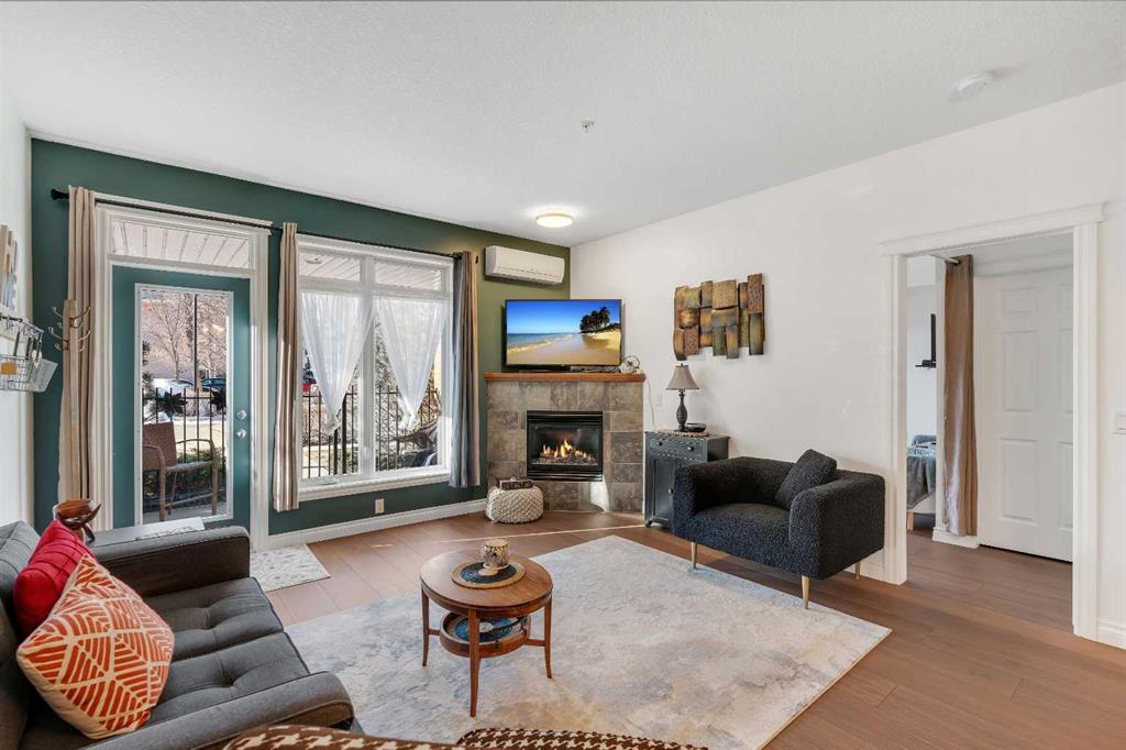 GROUND FLOOR WITH PRIVATE FRONT ACCESS | RENOVATED INTERIOR | TITLED UNDERGROUND PARKING | A/C | FLOODED WITH NATURAL LIGHT | LARGE SOUTH FACING WINDOWS | Welcome to Unit #101 at Copperwood in Spruce Cliff, ideally located just steps to Edworthy Park, the Bow River pathway system, and Shaganappi Point Golf Course. This upgraded 1 bed + 1 bath condo offers over 750 sqft of open concept living with fresh paint, high end engineered hardwood flooring, upgraded lighting, and a refreshed bathroom. The large kitchen is outfitted with stainless steel appliances, Corian countertops, garburator, a generous breakfast bar, and plenty of cabinetry for both storage and display. The living area centres around a cozy gas fireplace and flows seamlessly to the spacious covered patio, perfect for morning coffee or direct street access for dog owners or those who prefer to avoid elevators. The primary bedroom features a walk in closet with built in organizers and a 4 piece en suite. Additionally there is a built in desk or work area at the front that is perfect for those working from home. Additional features include in suite laundry with extra storage, built in central A/C, a titled heated underground parking stall, an assigned storage locker, and access to Copperwood’s outstanding amenities including a massive fitness facility, guest suite, party room, car wash bay, and secure bike storage. Not to be overlooked, the parking, storage, and elevator are all within a few metres of each other, a convenience often missed in other condo developments. Pet friendly and perfectly suited for professionals, travellers, or downsizers looking for a Spruce Cliff condo in a vibrant inner city location, walkable to Westbrook C Train Station, Westbrook Mall, the public library, groceries, parks, pathways, and just 5 minutes to downtown Calgary. Please reach out to book your private showing today.