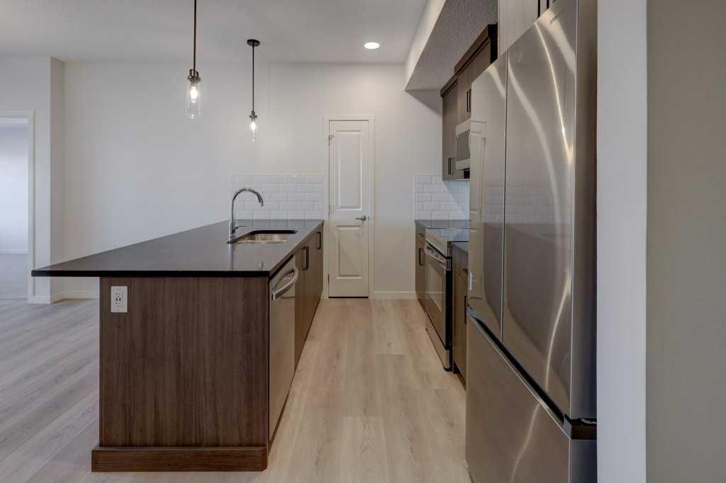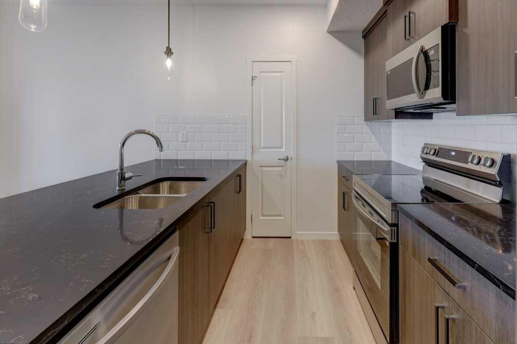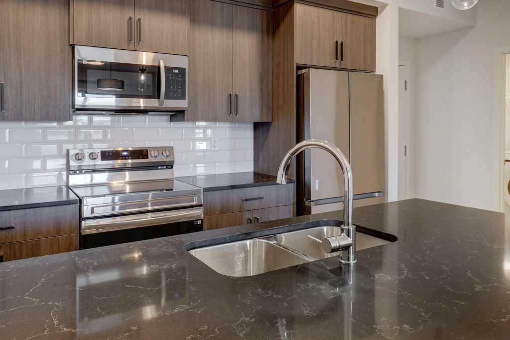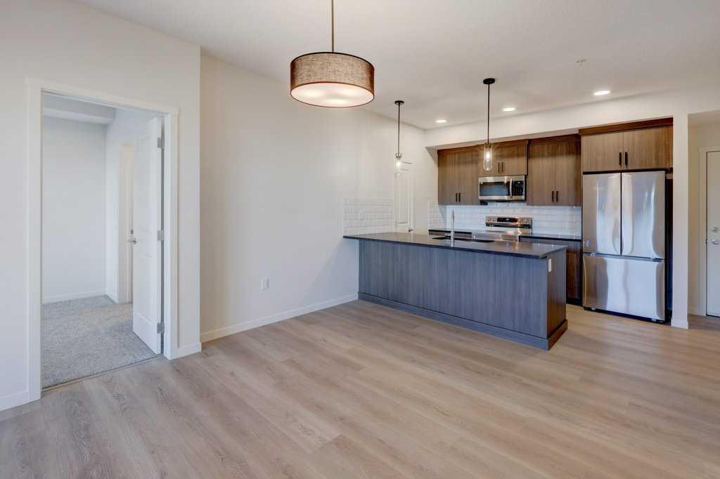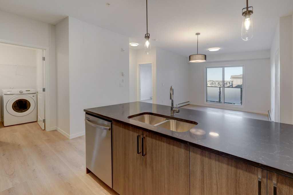 INTRODUCING GLACIER RIDGE, IN BEAUTIFUL NORTHWEST CALGARY. BUILT BY CEDARGLEN LIVING, WINNER OF THE Customer Insight BUILDER OF CHOICE AWARD, 6 YEARS RUNNING! BRAND NEW \"GR08R\" unit with high-spec features. You will feel right at home in this well thought-out, 902.12 RMS sq.ft. 2 bed, 2 bath home with open plan, 9\' ceilings, Low E triple glazed windows, BBQ gas line on the patio, Fresh Air System (ERV), and so much more. The kitchen is spectacular with full height cabinets, quartz counters, undermount sink, rough-in water line to the fridge and S/S appliances. The island is extensive with built in flush breakfast bar, which transitions into the spacious living area, perfect for entertaining. The spacious primary bedroom has a large bright window (triple pane windows) and huge walk-in closet. You\'ll be impressed with the 4pc ensuite with double vanities and stand up shower. The second bedroom is located on the other side of the unit for privacy and a 4pc bath with quartz counters, and undermount sink is located next to it. Nearby is the spacious laundry/storage room, this is a must see (washer & dryer included). Highlights include: Hardie board siding, designer lighting package, sound reducing membrane to reduce sound transmission between floors, clear glass railing to balconies and 1 titled underground parking stall included. A once in a lifetime community in Northwest Calgary. Framed by views of the Rocky Mountains and distinguished by natural coulees that cross the land, Glacier Ridge offers a rare chance for families to live in a new community. PET FRIENDLY COMPLEX, IMMEDIATE POSSESSION AVAILABLE AND DON\'T FORGET TO CHECK OUT THE VIRTUAL TOUR.