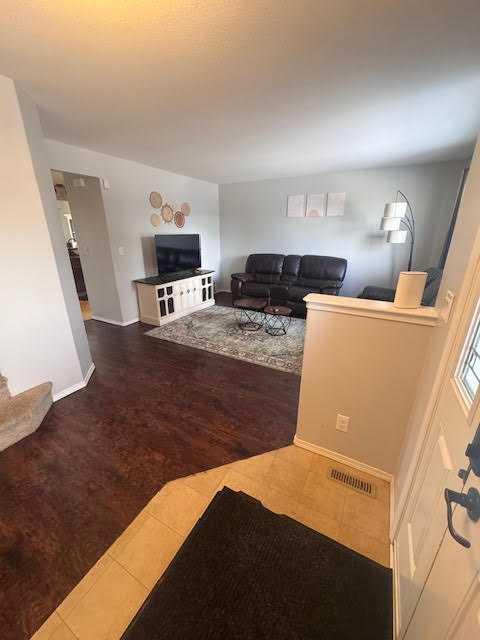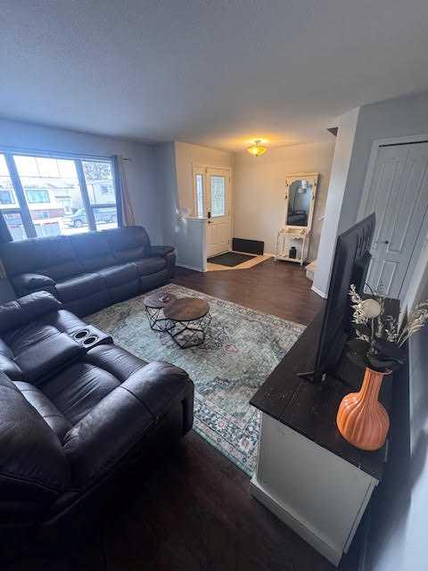 When location and walking distance is a priority this half duplex is located in a well-established neighborhood, close to the down town core and within walking distance to all the amenities, shopping, schools, medical center, numerous parks and play grounds. The home welcomes you with a bright and inviting living room that flows effortlessly into a functional galley kitchen featuring dark wood cabinetry and a large counter that not only gives plenty of work space but additional breakfast bar for extra seating. Entertaining dinner guest is a breeze in the dinning area as it can easily accommodate a large table with seating for six or more. Located at the back entrance you will find a 2 pc bathroom with convenience and easy access for main floor living that offer both comfort and practicality for a busy household or a visiting guest. The second level holds a generous primary bedroom and includes a walk-in closet, while the thoughtfully designed 4-piece main bathroom is surrounded by ample closets for extra storage. Two additional bedrooms, each with oversized closets, complete the upper level and provide plenty of space for a growing family. The unfinished basement offers excellent potential for future development, with roughed-in plumbing and a large electrical panel already in place to support additional living space.
