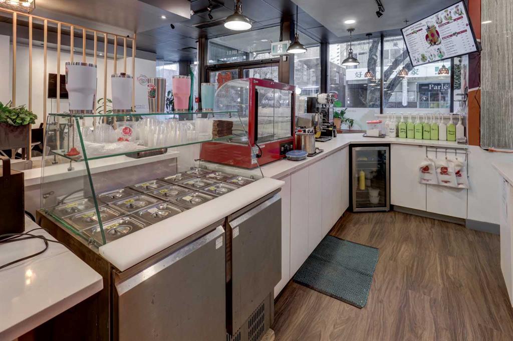 Great investment opportunity to own a retail CRU in Chinatown. This opportunity includes a turnkey quick service restaurant with two kitchens, professional servery and a spacious dining area. Immediate ability to operate your restaurant. Purchase as an investment and/or with the opportunity to rent out or operate your own restaurant or other retail store. Amazing main floor, south facing exposure onto the \"main street\" of Chinatown. Includes 1 tilted underground parking stall. Franchise opportunity available. Please refer to brochure for additional information, available to tour upon request. Please do not disturb existing tenant.