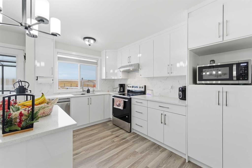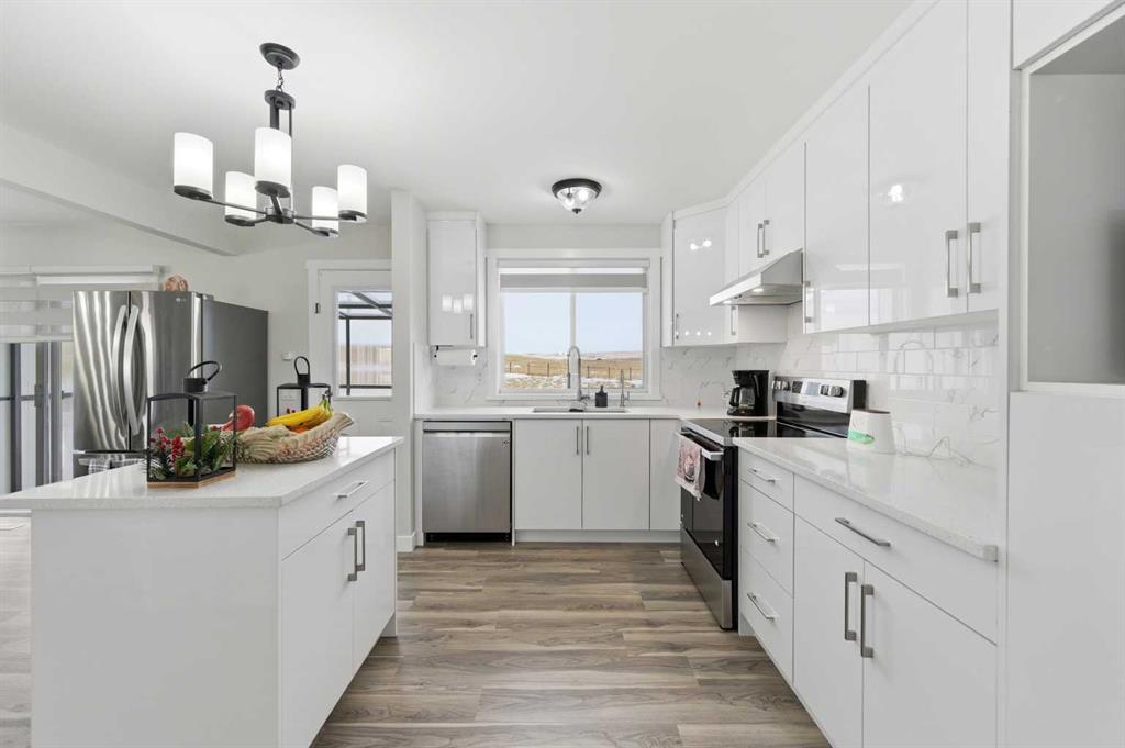 This beautifully updated 4-bedroom bi-level home sits on 4 peaceful acres, offering the perfect balance of rural living and modern comfort. Located just 35 minutes from Strathmore along the Trans-Canada Highway and close to Cluny for everyday amenities, the property also benefits from bus service to Wheatland Crossing K-12 School. With over 2,000 sq ft of developed living space, the home rests on a new 2018 concrete foundation and has seen extensive upgrades. In 2018, the property received a new well with a 20 GPM rating, a 1200-gallon septic tank and field, a fully renovated 4-piece bathroom, a new roof, a 100A electrical panel, new plumbing throughout, new exterior doors and windows, a new pressure tank and hot water tank, and fresh paint. Improvements in 2021 and 2022 include central air conditioning, a new furnace heat exchanger, a gas heater for the garage, insulated garage doors, new laundry appliances, a new fridge and dishwasher, and updated countertops and backsplash. Recent improvements in 2025 include brand new kitchen cabinets with quartz countertops and a brand new electric range, new paint on walls and ceilings, new lights, new blinds, new flooring,new water treatment system and water softener and a sunroom.