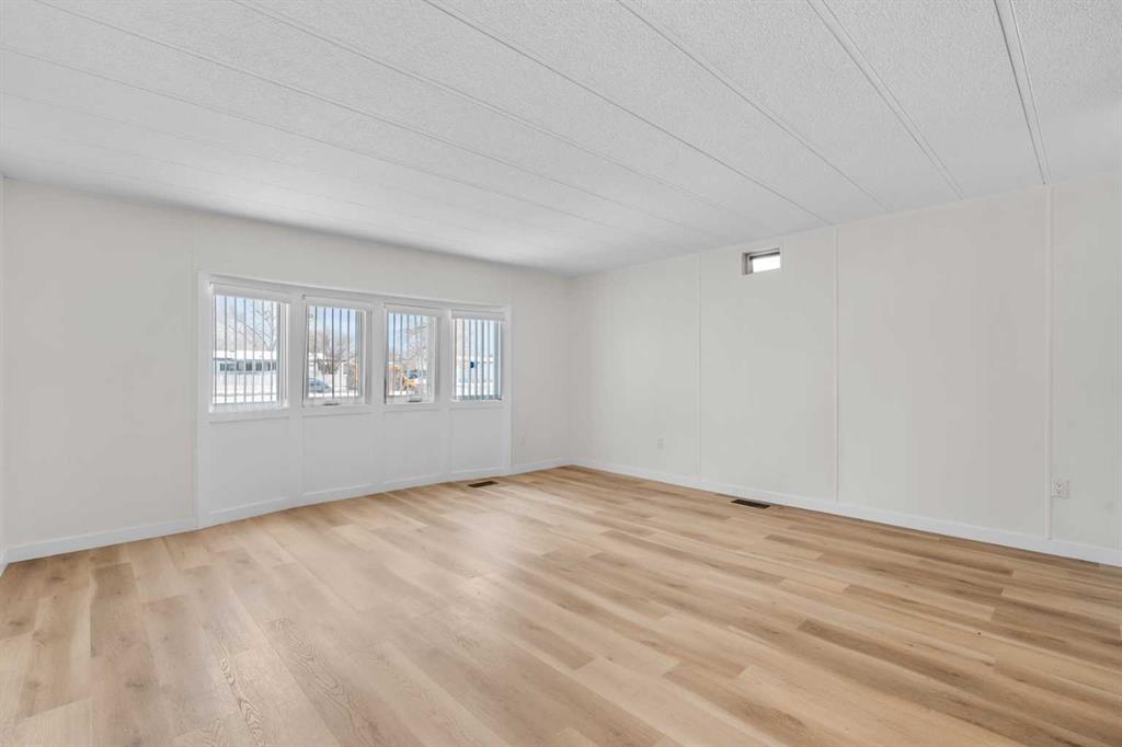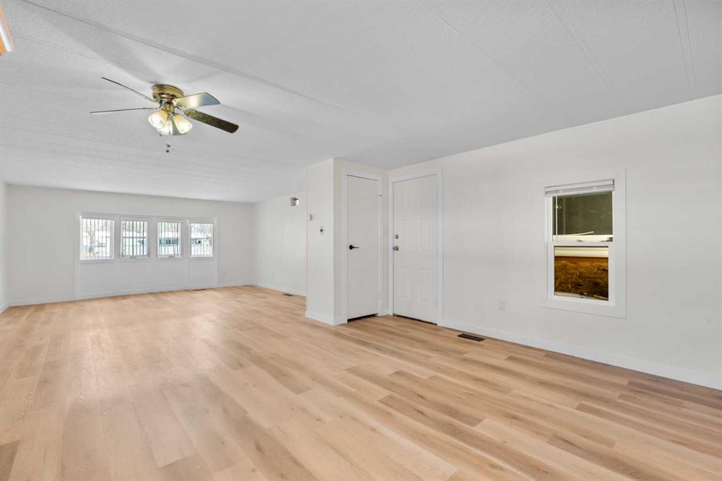 Don’t wait to view this property - you won’t be disappointed! Renovated 3 bed, 1 bath mobile home in the plus-18 section, conveniently located Sunpark Mountview Mobile Home Park. FULLY RENOVATED WITH ALL OF THE BIG-TICKET ITEMS DONE! This home is on a cul-de-sac with quick access to 17 Ave SE, sits across from a green space, and has a large, private backyard. You will see it has a great layout with a large, living room, huge kitchen, and dining area with tons of newer kitchen cupboards, including two pantries, and new stainless-steel fridge. You will find new vinyl plank flooring throughout. The home is painted in a modern color palette designed to suit any decor, a spacious hallway leading to the large 4-pce bath with newer tub, toilet and vanity. The large living brings in natural light through the front windows. The primary bedroom is spacious with a large closet. The second and third bedrooms are a good size, and one can be used as an office or flex room. This home sits on a large lot with parking for two cars side by side in the laneway. Lot rent of $1100 per month includes water, sewer, garbage pickup and snow removal. Unbeatable location: Enjoy quick access to 17 Ave SE, Stoney Trail, Deerfoot Trail, and downtown Calgary. Transit is just a block away, while East Hills Shopping Centre, International Avenue, restaurants, and all amenities are minutes from your door. and all levels of transit, shopping, restaurants and amenities are close by. Plus, Elliston Park is right across the street. Lease approval is required. Pets are allowed with approval. This move-in ready home offers exceptional value for the price. Don’t miss your opportunity—schedule your viewing today and picture yourself settling into this beautifully updated, conveniently located home! Check out the iGuide tour for a virtual walk-through