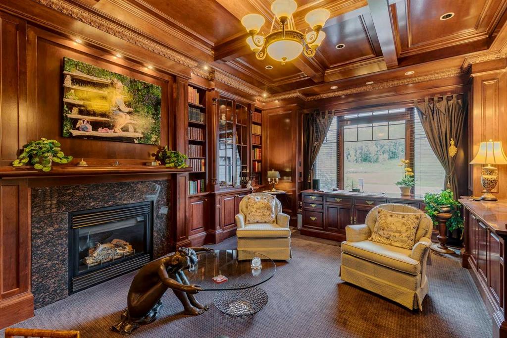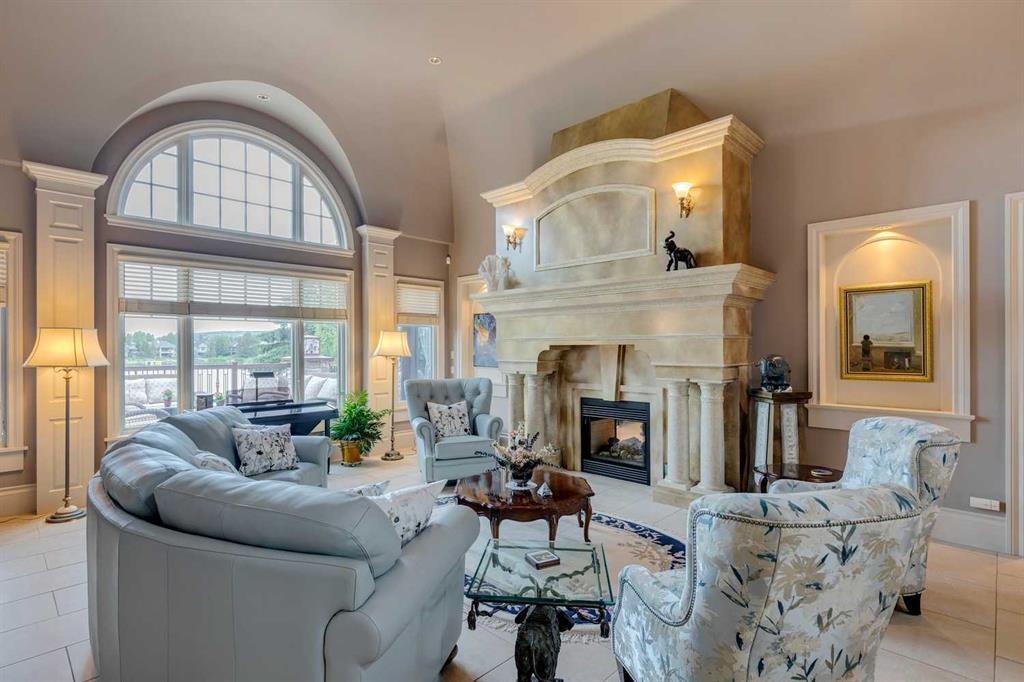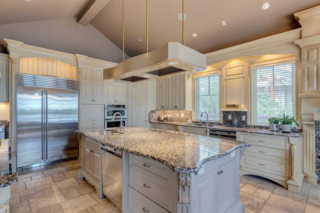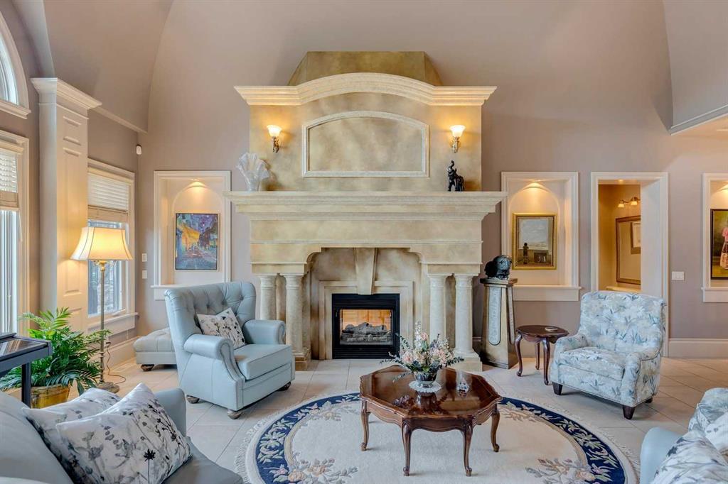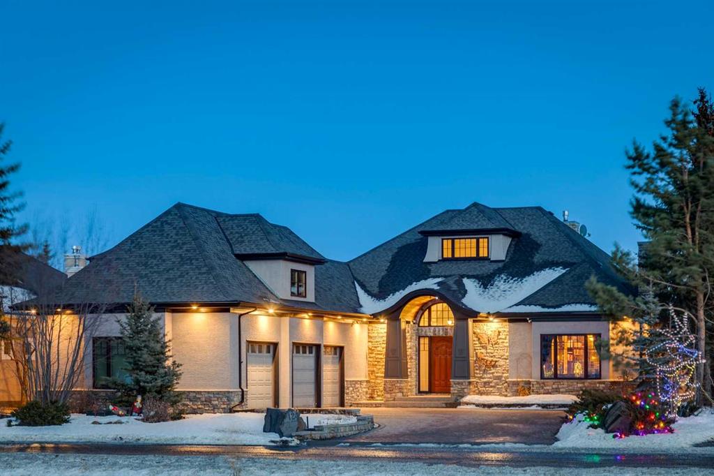 Discover one of the most iconic estate homes offered in prestigious Elbow Valley Estates—an extraordinary custom residence that combines European grandeur, architectural artistry, and exceptional craftsmanship. Perfectly positioned on a private lakefront lot, this executive walkout bungalow offers over 8000 square feet of exquisitely developed living space, designed with precision over years of thoughtful planning and executed by master artisans. From the moment you enter the grand foyer with its coffered and barrel-vaulted ceilings, it’s clear this is a home unlike any other. The main level features a sun-drenched great room with a double-sided fireplace and expansive windows framing unobstructed lake views. The heart of the home is the richly appointed ‘French Manor’ inspired kitchen—equipped for grand-scale entertaining with granite countertops, top-tier appliances including a Sub-Zero refrigerator, gas range with pot filler, two dishwashers, and a walk-in pantry. A cozy breakfast nook with fireplace and access to the expansive upper deck provides the perfect spot for morning coffee overlooking the water (with handi-cap access). An elegant formal dining room with custom glass cabinetry, a fully paneled library/office with fireplace, and a large laundry/sewing/hobby room complete the main level. A reverse osmosis water system is conveniently located in the craft room. The luxurious primary suite is a private sanctuary, featuring a vaulted sleeping area, two-way fireplace, and a spa-inspired circular ensuite with bubbling soaker tub, walk-in shower, dual vanities, and a generous dressing room with built-ins. The suite also offers deck access to enjoy tranquil lake views. A versatile loft functions as a full office or creative workspace, complete with multiple workstations—ideal for today\'s remote professional or growing family. The lower level is designed for recreation and relaxation, boasting an authentic English-style pub with a full wet bar, games room, media/theatre room, and three additional spacious bedrooms—each with their own private ensuite and walk-in closet. Three solariums enhance the lower level, offering a fully enclosed hot tub retreat, home gym, and peaceful sitting room, all flooded with natural light. This remarkable residence is equipped with countless thoughtful upgrades, including two newer air conditioning units, newer hot water tank and sump pump, new sinks and hardware in the craft room and kitchen . The property also features a recently serviced irrigation system. Designed for effortless living, this home includes hydronic in-floor heating on all levels, a dramatic central staircase, private elevator, and a heated triple garage. Every detail reflects unparalleled quality and meticulous attention throughout. Outdoor living is equally exceptional, with sweeping views of the lake and beautifully landscaped grounds—an entertainer’s dream and a private oasis.