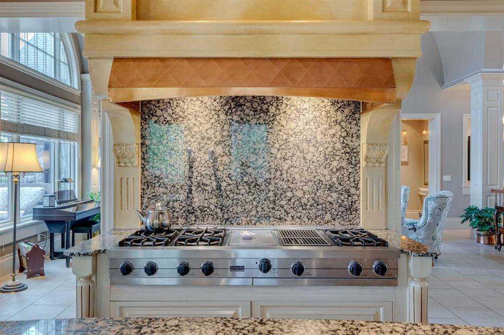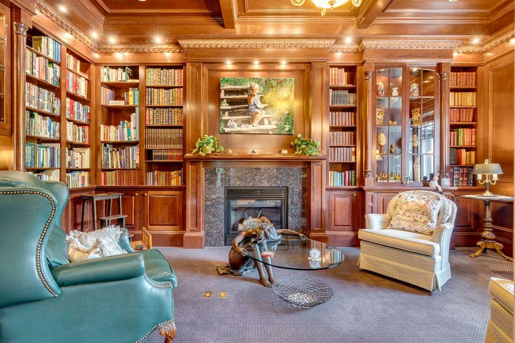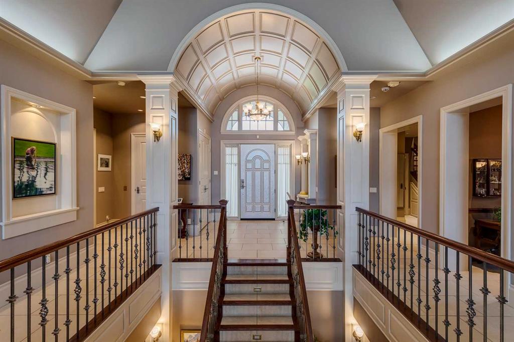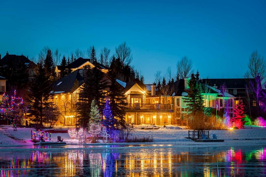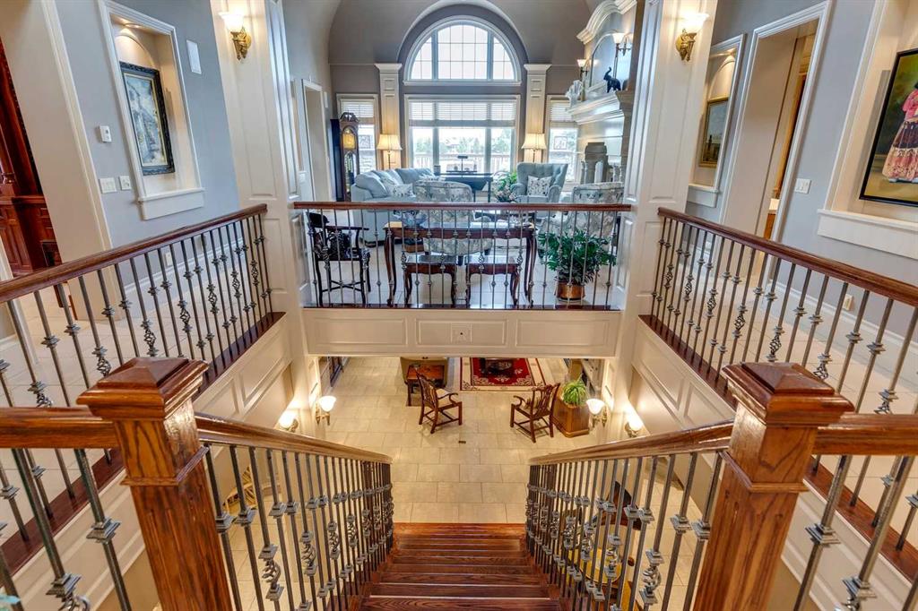 Discover one of the most iconic estate homes offered in prestigious Elbow Valley Estates—an extraordinary custom residence that combines European grandeur, architectural artistry, and exceptional craftsmanship. Perfectly positioned on a private lakefront lot, this executive walkout bungalow offers over 8000 square feet of exquisitely developed living space, designed with precision over years of thoughtful planning and executed by master artisans. From the moment you enter the grand foyer with its coffered and barrel-vaulted ceilings, it’s clear this is a home unlike any other. The main level features a sun-drenched great room with a double-sided fireplace and expansive windows framing unobstructed lake views. The heart of the home is the richly appointed ‘French Manor’ inspired kitchen—equipped for grand-scale entertaining with granite countertops, top-tier appliances including a Sub-Zero refrigerator, gas range with pot filler, two dishwashers, and a walk-in pantry. A cozy breakfast nook with fireplace and access to the expansive upper deck provides the perfect spot for morning coffee overlooking the water (with handi-cap access). An elegant formal dining room with custom glass cabinetry, a fully paneled library/office with fireplace, and a large laundry/sewing/hobby room complete the main level. A reverse osmosis water system is conveniently located in the craft room. The luxurious primary suite is a private sanctuary, featuring a vaulted sleeping area, two-way fireplace, and a spa-inspired circular ensuite with bubbling soaker tub, walk-in shower, dual vanities, and a generous dressing room with built-ins. The suite also offers deck access to enjoy tranquil lake views. A versatile loft functions as a full office or creative workspace, complete with multiple workstations—ideal for today\'s remote professional or growing family. The lower level is designed for recreation and relaxation, boasting an authentic English-style pub with a full wet bar, games room, media/theatre room, and three additional spacious bedrooms—each with their own private ensuite and walk-in closet. Three solariums enhance the lower level, offering a fully enclosed hot tub retreat, home gym, and peaceful sitting room, all flooded with natural light. This remarkable residence is equipped with countless thoughtful upgrades, including two newer air conditioning units, newer hot water tank and sump pump, new sinks and hardware in the craft room and kitchen . The property also features a recently serviced irrigation system. Designed for effortless living, this home includes hydronic in-floor heating on all levels, a dramatic central staircase, private elevator, and a heated triple garage. Every detail reflects unparalleled quality and meticulous attention throughout. Outdoor living is equally exceptional, with sweeping views of the lake and beautifully landscaped grounds—an entertainer’s dream and a private oasis.