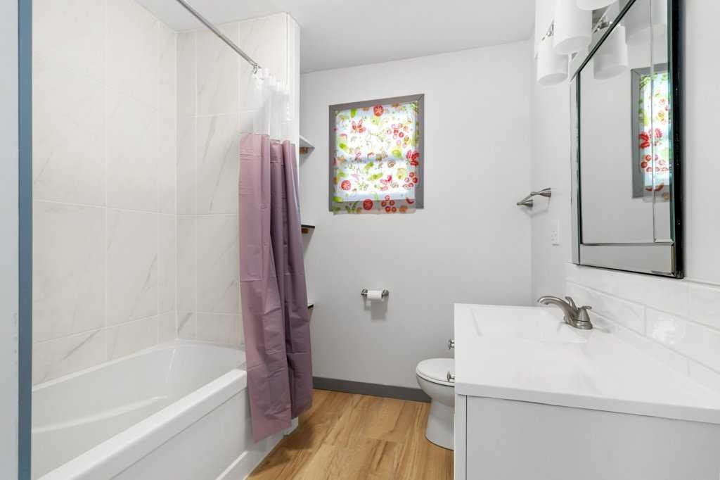 This beautifully updated bungalow offers bright, comfortable living on a large, fenced lot in a welcoming community setting. Painted in crisp white tones, the home feels airy and welcoming, with an open living room that flows nicely into the rest of the space. The kitchen features white cabinetry, stainless steel appliances, a gas stove, and a convenient pantry, creating a functional heart of the home. Vinyl plank flooring, new windows installed in 2025, and updated wiring add modern comfort and peace of mind. The spacious primary bedroom includes a private 4-piece ensuite, with two additional bedrooms located on the main level. The partially developed basement offers added flexibility with one additional bedroom. Major updates include a drilled well completed in 2003 with an iron filtration system, a furnace approximately 10 years old, a roof replaced within the last 5 years, and a tank and field replaced in November 2025. Outside, enjoy the expansive yard with mature fruit trees, full fencing, and a single detached 15 x 24 foot garage. Ideally located close to Wolf Creek Golf Course and the community hall with an outdoor skating rink, this property blends small-town charm with nearby recreation.