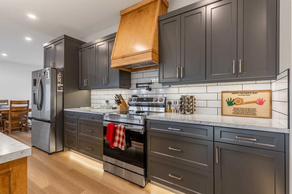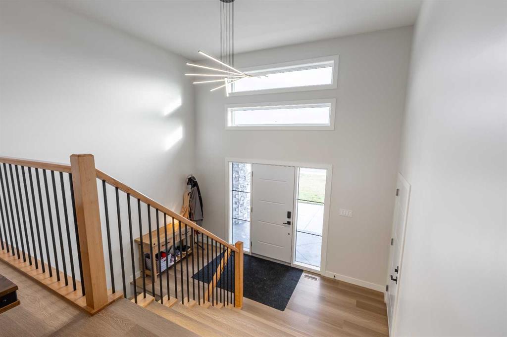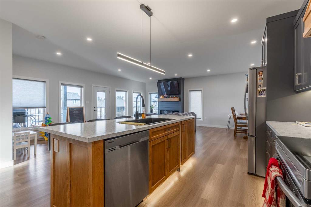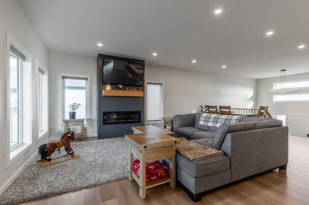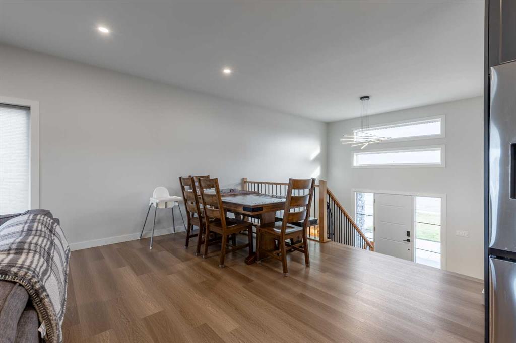 This Nobleford bi-level home was built with comfort in mind, offering a perfect layout for for busy families with enough space to work, play, entertain, and relax! Past the triple attached garage and front porch you\'ll enter into a bright front foyer with high ceilings and closet storage. On the main level, a large living room with a gas fireplace is located beside a comfortable dining room and a spacious kitchen with tons of cupboard space and a huge central island with a sink and breakfast bar. Past the walk-in pantry and down the hall, you\'ll find two bedrooms and a four-piece bathroom. The entire upper level is a luxurious primary bedroom suite with a walk-in closet and ensuite bath which features a double vanity and a walk-in rain shower with built-in ledge shelving. Downstairs, you can set up the play room or entertainment centre of your dreams, with a large rec room leading down a hall to two more bedrooms, another four-piece bath, a storage area, and a laundry room. On the covered rear deck complete with seating space and recessed lighting, you can look out over the landscaped back yard, keeping an eye on the kids as they play while entertaining friends and family in style. If a stunning home in a quiet neighborhood sounds like the place for you, give your REALTOR® a call and book a showing today!