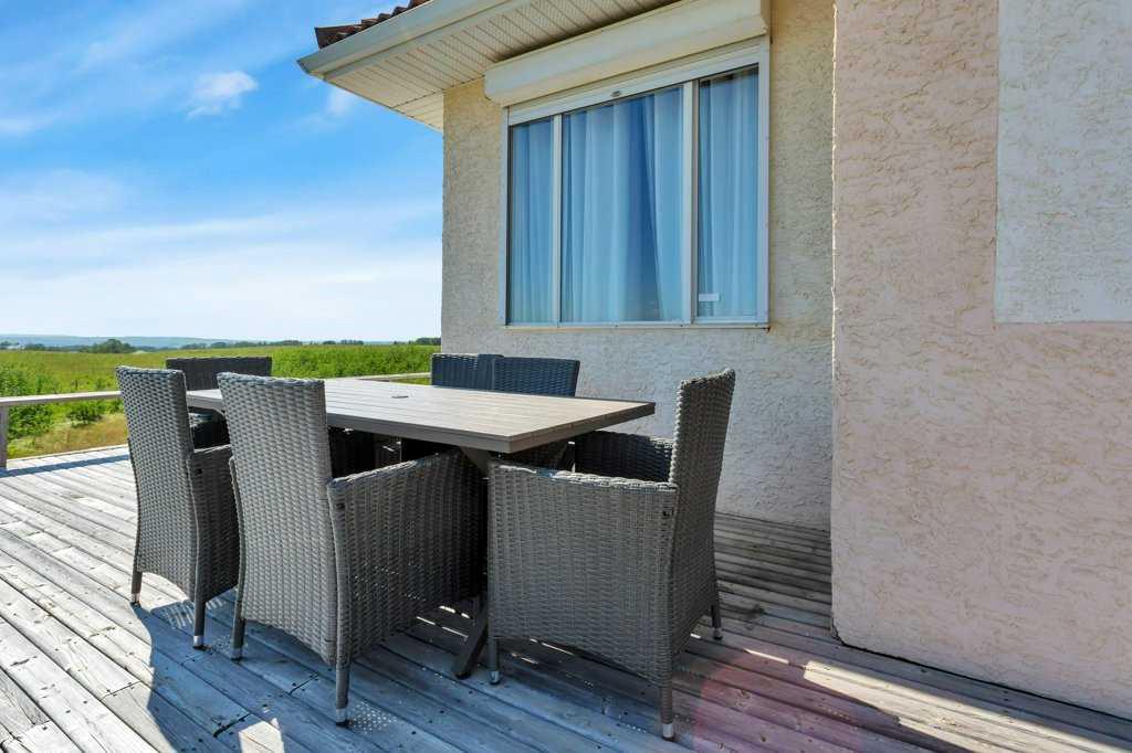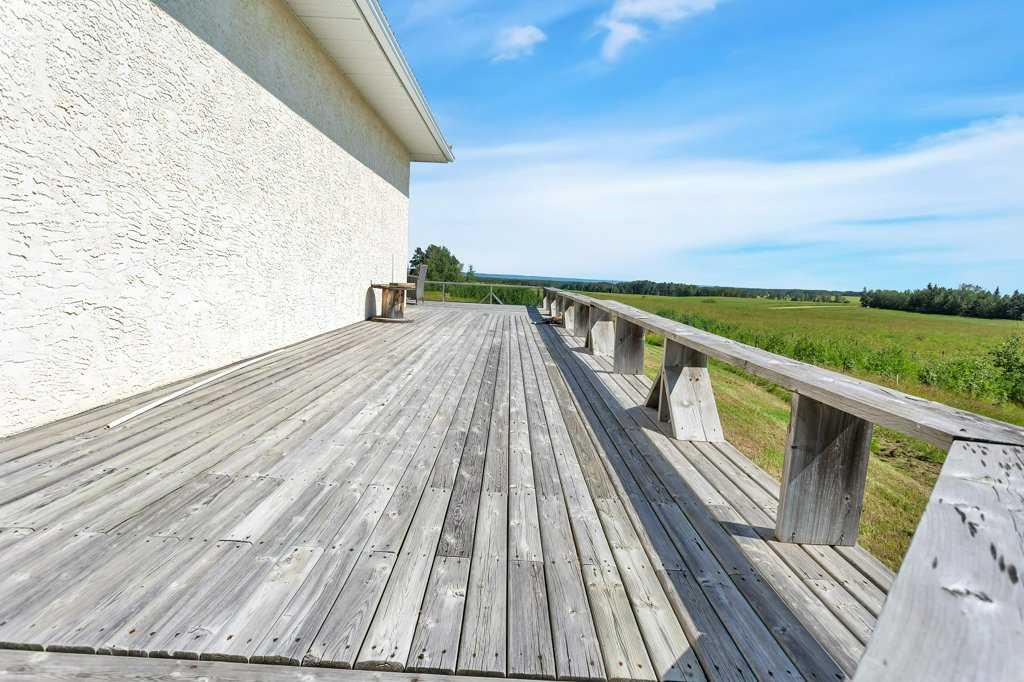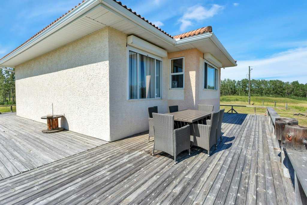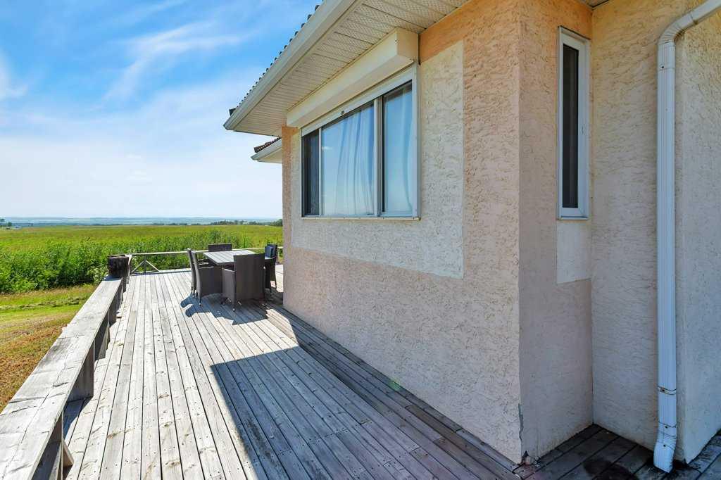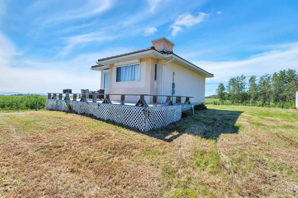 Originally a senior show home, the house was relocated to this acreage in 1997 and is ideally perched near the west end of the property to maximize the lake view. From the wrap-around deck to the east-facing windows in the open-concept kitchen, dining, and living area, the scenery is truly front and center.