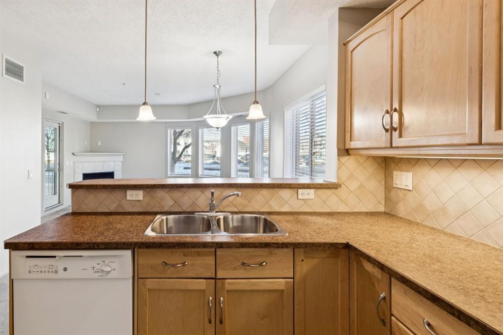 Welcome to the Aviemore of McKenzie Towne, a highly sought-after 55+ condo residence known for its welcoming atmosphere, exceptional lifestyle amenities, and unbeatable location in the heart of this lively, character-rich community. This ground-floor end unit offers a rare combination of privacy and convenience with only one shared wall, air conditioning, efficient heating, a cozy fireplace, and a personal patio that allows for easy outdoor access and relaxed everyday living. From the moment you enter, you’ll appreciate the wide-open layout enhanced by high ceilings and elegant arched doorways that create a bright, spacious feel throughout the home.