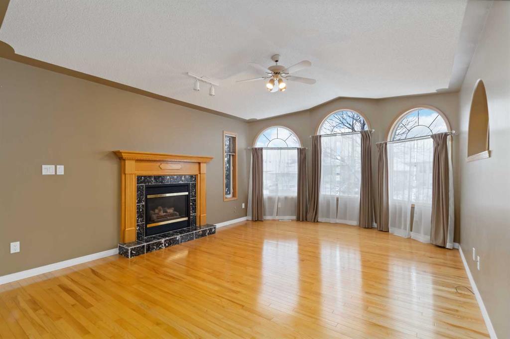 Step inside to a spacious foyer offering direct access to the double attached garage. The main floor features a bright, sun-filled living room where large windows highlight the hardwood flooring. A gas fireplace with elegant woodwork and marble tile surround adds a timeless touch of class. The living room is open into the dining area, which invite you through glass doors to a stunning two-tiered deck... an oasis-like space perfect for entertaining or relaxing with family. The private backyard is adorned by mature trees and shrubs, creating a peaceful outdoor retreat.