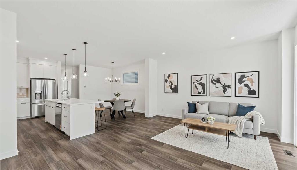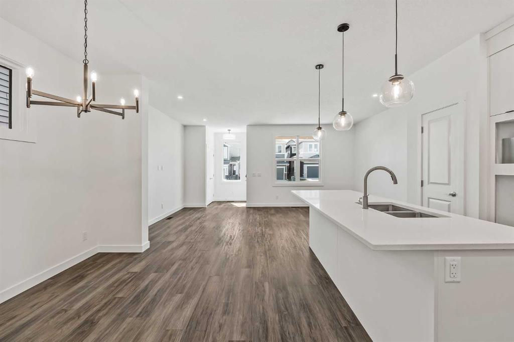 An incredible opportunity to own a brand-new home with IMMEDIATE POSSESSION in the desirable new community of Livingston. This bright and sunny home is situated on a south-facing front lot, allowing natural light to pour through the main level throughout the day. Offering 4 bedrooms, 3.5 bathrooms, two living spaces, and an undeveloped basement with a private side entrance, this property is ideal for investors, multi-generational living, or families looking for space to grow. Built by Brookfield Residential, the Oxford model is a thoughtfully designed home with nearly 2,000 sq. ft. of developed living space above grade. The open-concept main floor features 9-foot ceilings, extended-height cabinetry, and a large central island with a gourmet kitchen package that includes a chimney-style hood fan and built-in wall oven and microwave. The spacious great room is filled with natural light and is perfect for everyday living and entertaining. A main floor bedroom with its own full ensuite provides excellent flexibility for guests, extended family, or a private home office. Durable and stylish luxury vinyl plank and tile flooring flow throughout the main level, making the home well suited for families with children and pets. Upstairs, a central bonus room separates the primary suite from the secondary bedrooms, creating a functional and well-balanced layout. The primary bedroom offers a well-appointed ensuite with dual sinks and a walk-in shower. Two additional bedrooms, a full bathroom, and a dedicated laundry room complete the upper level. The basement is undeveloped and ready for your future design ideas, with direct access from a private side entrance offering excellent potential. Completing the property is a private backyard and a double parking pad. The Oxford truly offers it all with 4 bedrooms including one on the main level, 3.5 bathrooms, two living areas, and a versatile layout designed to meet a wide range of needs. This brand new home is backed by both the builder warranty and the Alberta New Home Warranty, providing peace of mind for years to come.