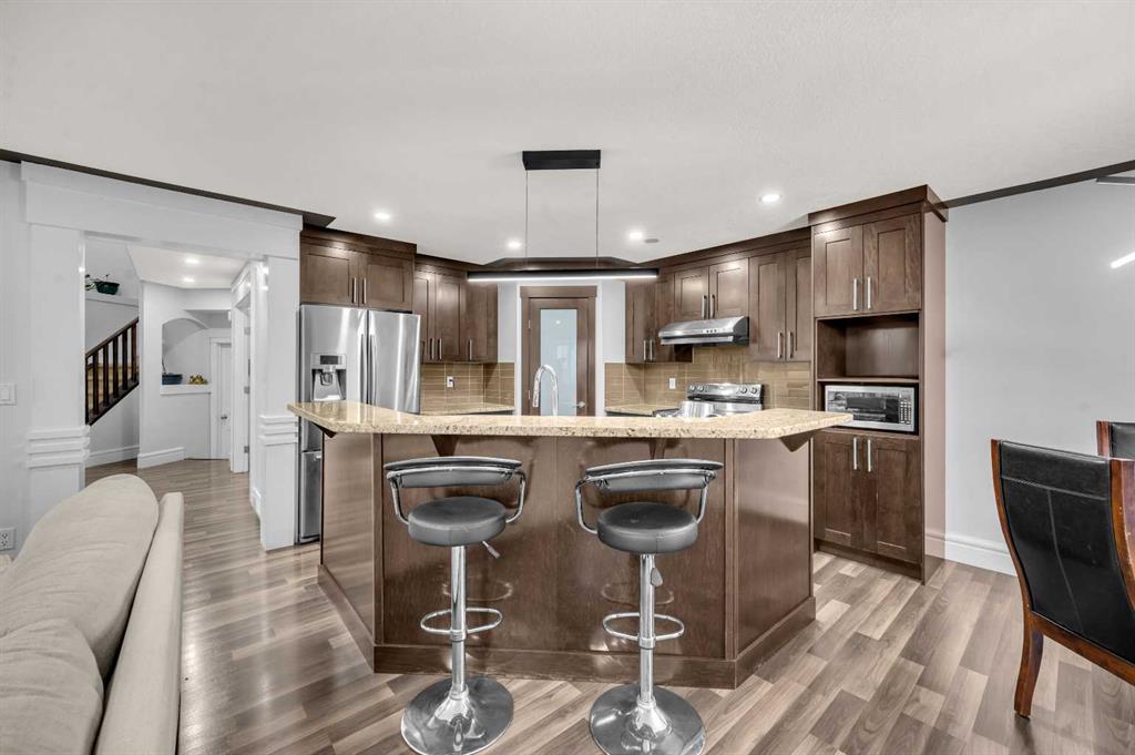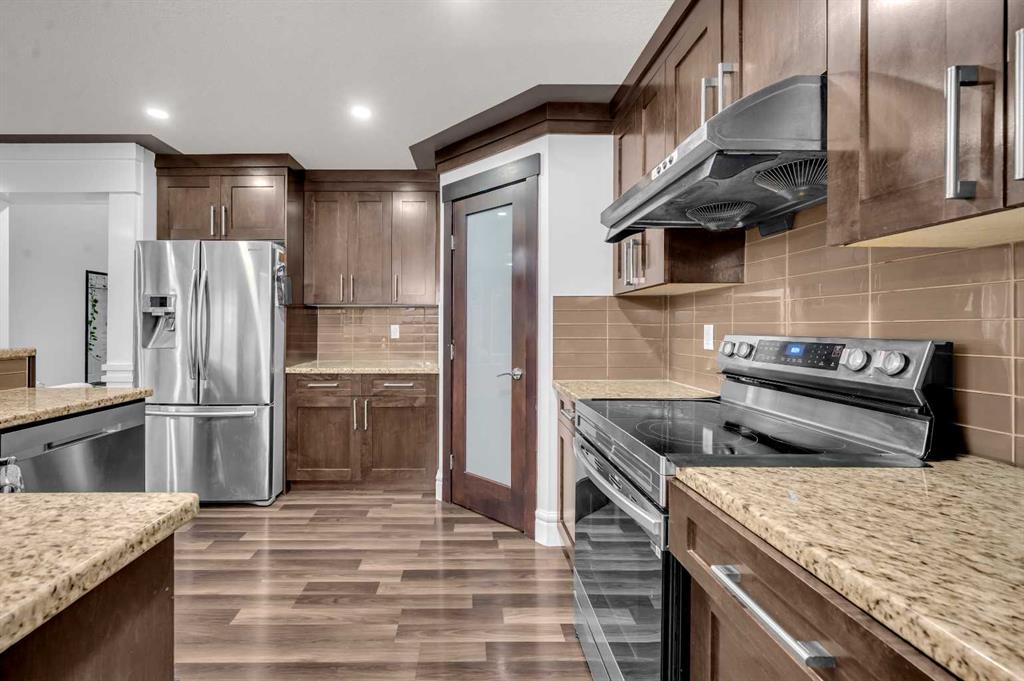 Welcome to this exceptional 2-storey family home located in one of Chestermere’s most desirable areas—just a 2-minute walk to Chestermere Lake and its sandy beach, offering the perfect blend of everyday convenience and year-round lake-lifestyle living. Situated on an impressive 6,942 sq. ft. lot and complete with a triple attached garage, this home provides an abundance of indoor and outdoor space for growing families, entertainers, and anyone seeking an elevated lifestyle steps from the water. As you step inside, you are greeted by a grand and inviting open-to-below living room that fills the main floor with natural light, creating a warm and welcoming atmosphere. A cozy gas fireplace serves as the focal point of the space, making it the perfect gathering area for family and guests. The expansive kitchen is designed for both daily functionality and entertaining, featuring granite countertops, stainless steel appliances, a large walk-in pantry, ample cabinetry, and a generously sized dining area overlooking the backyard. Adjacent to the main living space is a spacious main-floor den, ideal for a home office, playroom, or quiet flex room to suit your needs.