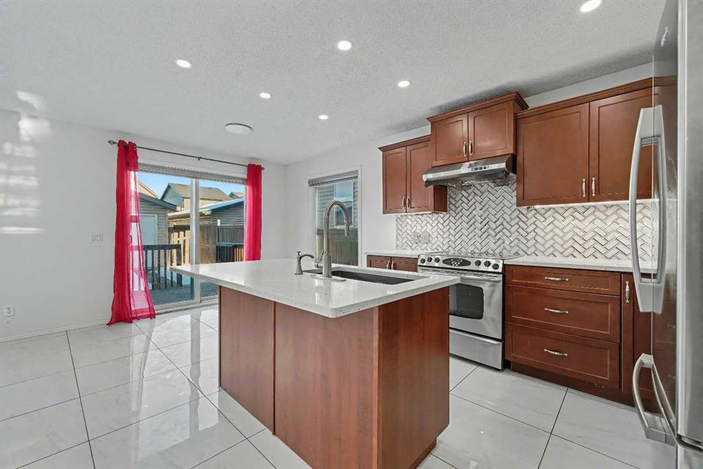 Gorgeous Family Home | 3 Bedrooms | 2.5 Bathrooms | Main Level Flex Room | Open Floor Plan | Bright with Natural Light | Recessed Lighting | Built in Speakers | Quartz Countertops | Stainless Steel Appliances | Herringbone Tile Backsplash | Gas Fireplace | Spacious Bedrooms | 4pc Primary Ensuite Bath | Custom Built-in Closet | Upper Level Laundry | Unfinished Basement | Basement Rough-ins | Great Backyard | Deck | Fully Fenced | Rear Double Detached Garage | Alley Access | Incredible Location | Close to Skyview Springs Playground | Family Friendly Neighbourhood. Welcome home to your gorgeous 3 bed, 2.5 bath family home boasting 1,601 SqFt throughout the main & upper levels with an additional 780 SqFt in the basement of a blank canvas. The beauty of this home starts outside with a statement red front door. Step inside to a foyer with great closet storage and open to below ceilings. The front flex room is a great space for overnight guests, a home office or day seating. The flex room is outfitted with built-in closet storage great for any type of organization. The heart of the home is the open floor plan kitchen, dining and living rooms. The kitchen is finished with timeless herringbone backsplash tiles, quartz countertops, stainless steel appliances and ample cabinetry. The centre island is the perfect spot for small meals or socializing while you cook. The dining room is ready for a dinner table to fit the whole family during the holidays and has sliding glass doors that lead to the deck. The sliding glass doors give both natural light and quick access to your backyard for outdoor cooking, dining and entertainment. The living room is centred with a gas fireplace and TV ready wall. The main level is complete with a 2pc bath. Upstairs holds 3 bedrooms; the primary and 2 additional. The primary bedroom is spacious and has a private 4pc bath that leads to a walk-in closet with custom storage. Bedrooms 2 & 3 share the main 4pc bath with a tub/shower combo. The upper level laundry room is every home owner\'s dream as its located near all the bedrooms. Downstairs, the unfinished basement has endless opportunities as its a blank canvas; design this space to fit your family\'s needs. Outside, the fully fenced backyard is a private oasis to enjoy in the summer months and is your quick access to your rear double detached garage. The garage has alley access and the front of the home has street parking readily available. This home is located in a family friendly environment and is close to all amenities, parks & playgrounds! Hurry and book your showing at this gorgeous family home today!