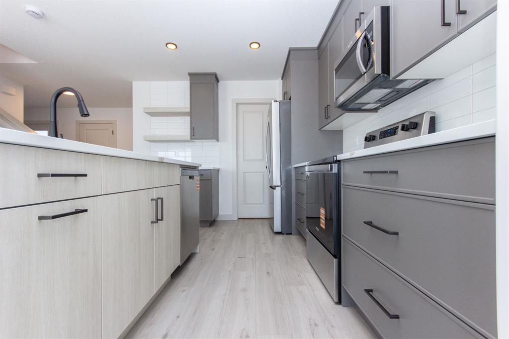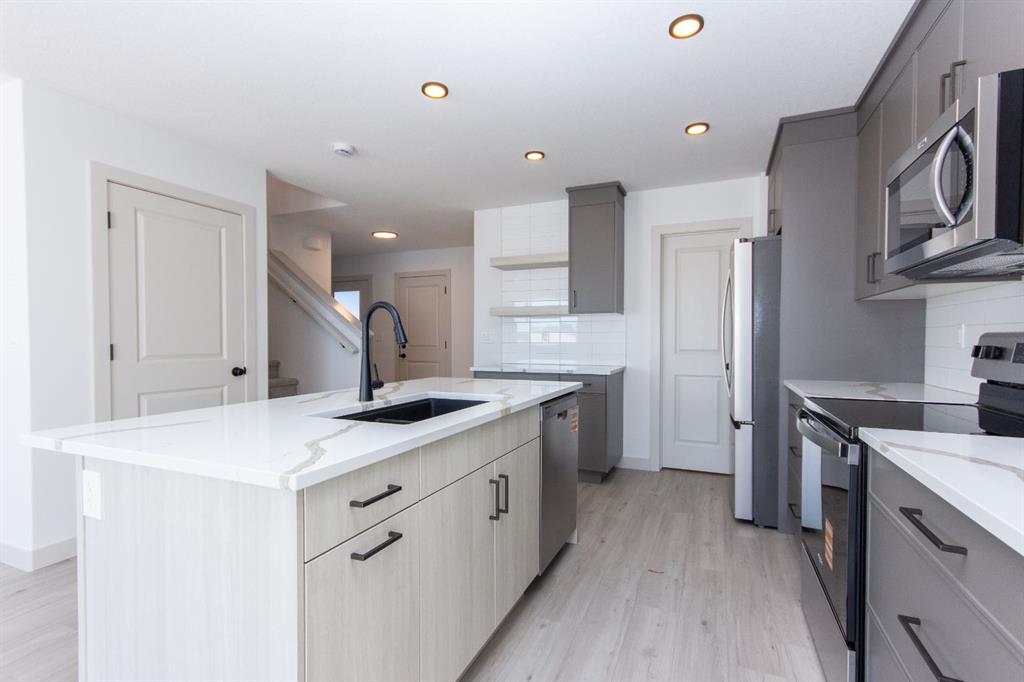 Be the first owner of this brand new Laebon Home situated close to parks, playgrounds, a school, and the numerous amenities of Timberlands and Clearview Market! Offering 1700+ square feet, this 2 storey Paxton floorplan offers a wide open main floor layout, an attached double garage, and a large second floor bonus room! The kitchen is well appointed with two tone raised cabinetry, stainless steel appliances, quartz countertops, a large island with eating bar, and a large walk in pantry. The living area is spacious and bright, and the adjacent dining area offers access to the back deck through large sliding patio doors. Upstairs you\'ll find the spacious master bedroom suite with your own private 4 pce ensuite and a large walk-in closet. Two kids\' rooms share a 4 pce bathroom, and you\'ll appreciate the convenience of upper floor laundry close to all the bedrooms. You\'ll love ending your day in the huge bonus room, which makes the perfect space for family movie nights or a relaxing space to unwind. The attached garage is insulated, drywalled, and taped. If you need more space, the builder can complete the basement development for you, and allowances can also be provided for blinds, and a washer and dryer to make this a completely move in ready package. 1 year builder warranty and 10 year Alberta New Home Warranty are included. Taxes have yet to be assessed. Immediate possession available!
