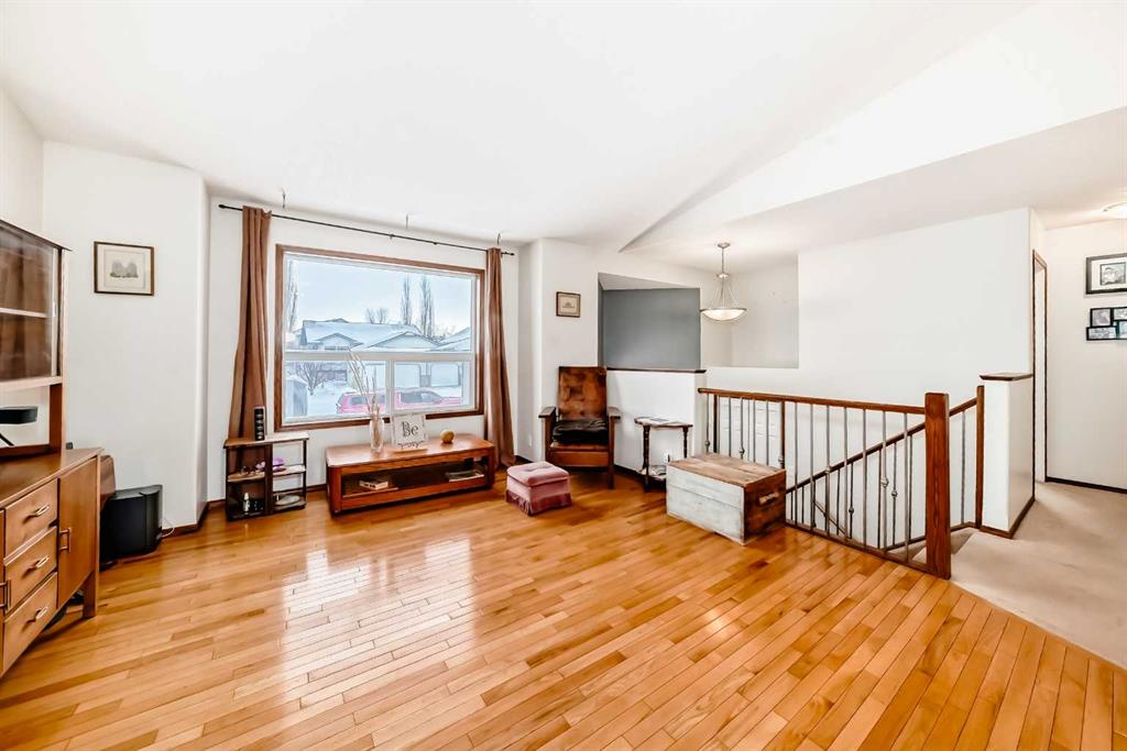 WELCOME to this terrific family home, perfectly situated on a highly desirable close. Designed with comfort and functionality in mind, this home features oak hardwood and tile flooring throughout the kitchen, front entry, and all bathrooms. The open-concept main living area is bright and inviting, highlighted by vaulted ceilings and a cozy gas fireplace in the living room—ideal for both everyday living and entertaining. The spacious kitchen offers an abundance of cabinetry, stainless steel appliances, a breakfast bar, and built-in cabinets and drawers for a convenient office or homework space, and features direct access to the deck, perfect for summer BBQs. The adjoining dining area provides plenty of room for family gatherings with an open floor concept to the living room. The main level includes three bedrooms, including a generous primary suite with a walk-in closet and a 3-piece ensuite. A full 4-piece bathroom completes the main floor. Downstairs, the fully developed basement offers exceptional living space with two additional bedrooms, a large family/rec room ideal for a TV or theatre area, and a 4-piece bathroom. The basement is roughed in for in-floor heating and central vacuum, with laundry conveniently located in the mechanical room. Outside, enjoy the fully fenced and landscaped backyard, complete with a fire pit for relaxing evenings. The maintenance-free deck features Duradek flooring and aluminum railings, making it both durable and stylish. With five bedrooms, multiple living areas, and a fantastic location, this home offers plenty of space for a growing family!