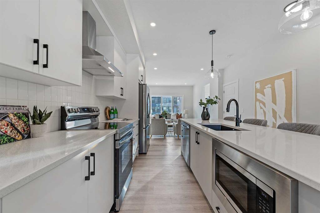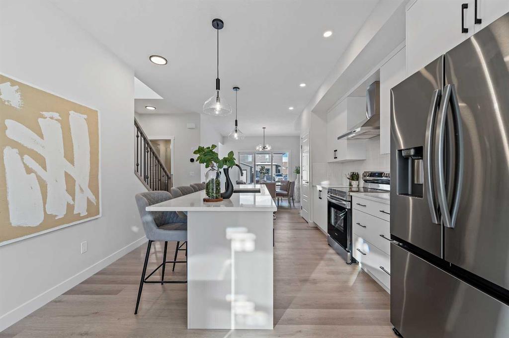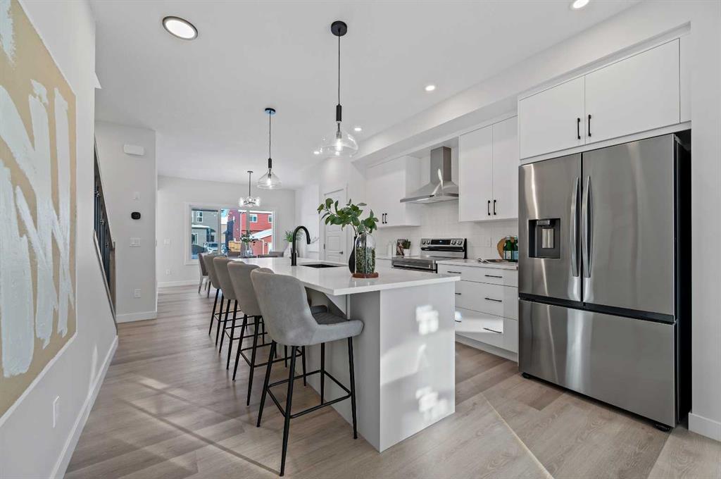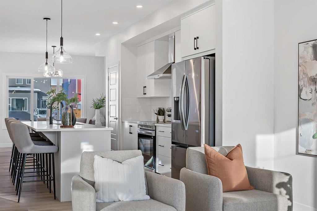 Welcome to this beautifully appointed, brand-new 3-bedroom, 2.5-bathroom duplex in the highly sought-after community of Fireside. Step inside to over 1600 sq. ft. of living space with an open-concept main floor. Large windows flood the space with natural light. The kitchen and living areas flow seamlessly, making it easy to entertain and enjoy everyday living. The kitchen offers ample storage, two-tone cabinetry in warm and cool colours, eye-catching black hardware and lighting, white quartz countertops, a spacious kitchen island and sleek stainless steel appliances. Head upstairs to a spacious primary suite with a 5-piece ensuite featuring an oversized shower and dual sinks. A walk-in closet completes the primary bedroom, making for a comfortable retreat. Two additional bedrooms, a full bathroom with a tub, and laundry complete the living levels. The unfinished basement with side entrance access and 9-foot ceilings offers endless potential to create extra living space to suit your needs. The backyard is a black canvas for you to landscape as you wish, and you can build the dream garage you have always wanted! With its quality finishes, smart layout, and unbeatable location, this Fireside duplex will be a great place to call home. Photos are representative and are of a previously built Felix model. Please see \"mood board\" in photos for colours and selections in this home.