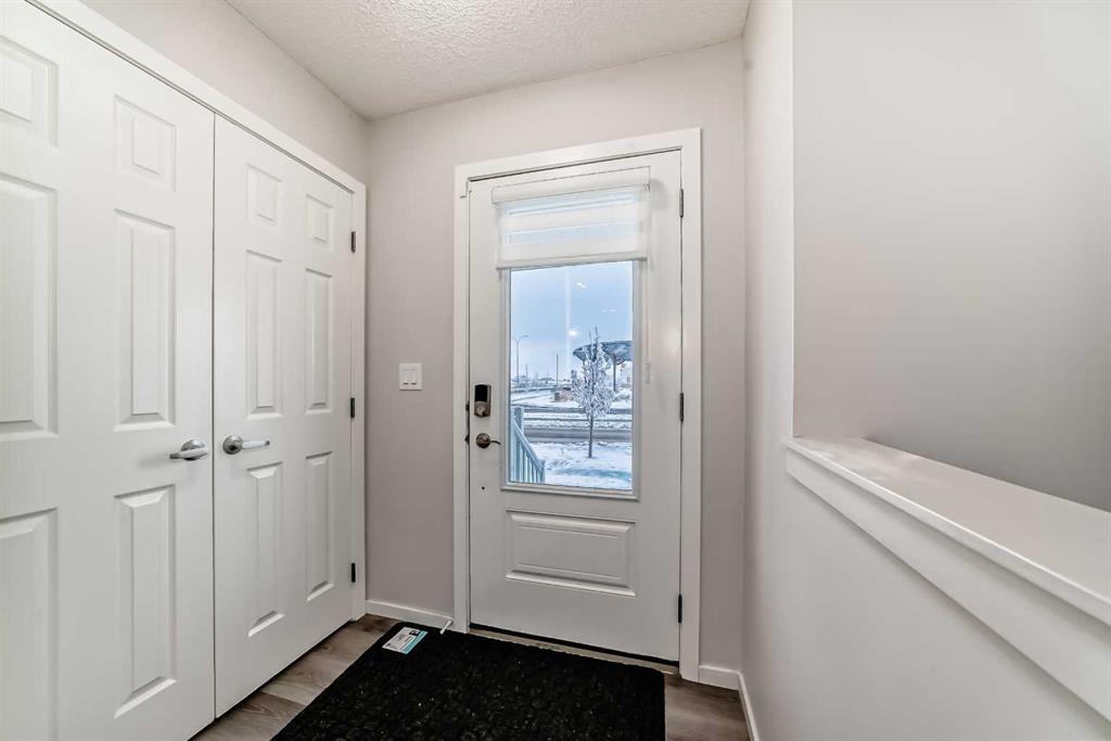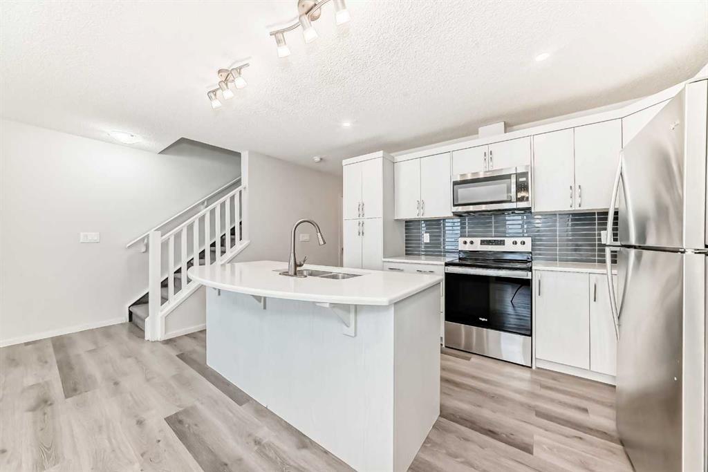 NO CONDO FEES in the over 1439 sq ft, 3 bdrm, 2.5 bath townhouse, with dbl attached garage. If you are looking to own your first home that is affordable and feels like new, look no further. Walking in, you will enjoy the open floor plan, vinyl plank flooring, a beautiful white kitchen with quartz counters, SS appliances, and a kitchen island with seating for 3. There\'s a 2-piece bathroom on the main as well as a mud room area before entering the double attached garage. Upstairs features 3 bedrooms. The primary bdrm will fit your king-size bed and has a 4-piece ensuite bath with quartz counters and a soaker tub. The walk-in closet is huge, bigger than many large homes. The other 2 bdrms are a good size, as well as a laundry room and another 4-piece bathroom with quartz and a soaker tub. The downstairs is plumbed for the bathroom, it\'s ready to go. There\'s a fresh air system added. The best part is it\'s conveniently located to No Frills, gas, restaurants, Purple Potomus preschool learning, schools and much more. The bus route is close by, with easy access to Stoney Trail, and the shopping center in Coventry Hills is 5 minutes away, with Superstore, Canadian Tire, Dollarama, Shoppers Drug Mart, Winners, Michaels, Staples, Home Depot, Vivo Recreation Center, IMAX movie theatre, many restaurants, and excellent stores. It\'s a win-win-win in any way that you look at it. priced sharply, and quick possession available.