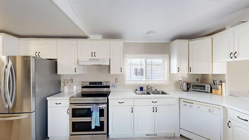 A very unique 3-bedroom, 3-bathroom home, a rare find, as you don’t often see an additional bathroom in homes of this style. The open-concept layout features vaulted ceilings, creating a bright and spacious feel. Outside, enjoy a fully fenced yard with additional storage provided by sheds. Recent updates include the fridge, stove, washer, and dryer, making this home move-in ready.