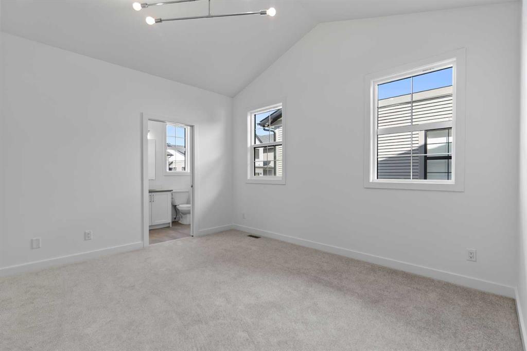 Welcome to luxury and convenience in the heart of Airdrie’s award-winning community of Cooper’s Crossing. This beautifully crafted corner-unit duplex townhome is one-of-a-kind—featuring the highly sought-after primary bedroom on the main floor, perfectly blending everyday comfort with smart design.