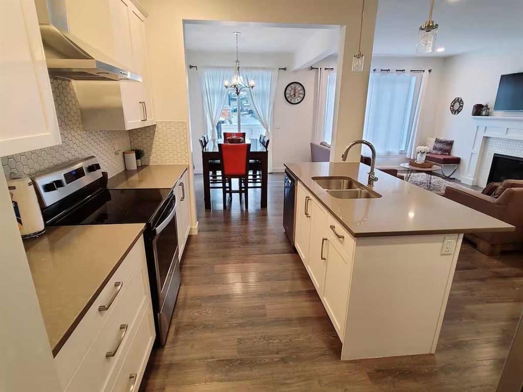 Welcome to Bayview! This stunning 2-story, 3-bedroom home is in excellent condition and has been lovingly maintained. The main floor boasts an open-concept design with 9-foot ceilings, high-quality laminate flooring, upgraded stainless steel appliances, a pantry, a dedicated dining area, and a cozy gas fireplace in the living room. Upstairs, the large primary bedroom features a luxurious ensuite with a tiled shower and a walk-in closet. The two additional bedrooms are spacious and filled with natural light from large windows. The second floor also includes a central bonus room. The basement is thoughtfully designed, with the mechanical area tucked to the side for extra space, large windows that could accommodate a fourth bedroom, and a bathroom. The southwest-facing backyard is generously sized and includes a large deck. Located in a peaceful neighborhood, this home is conveniently close to schools, parks, churches, canals, and all the amenities Airdrie has to offer.
