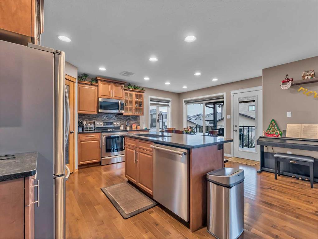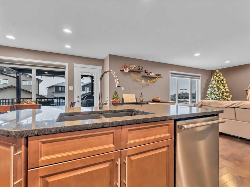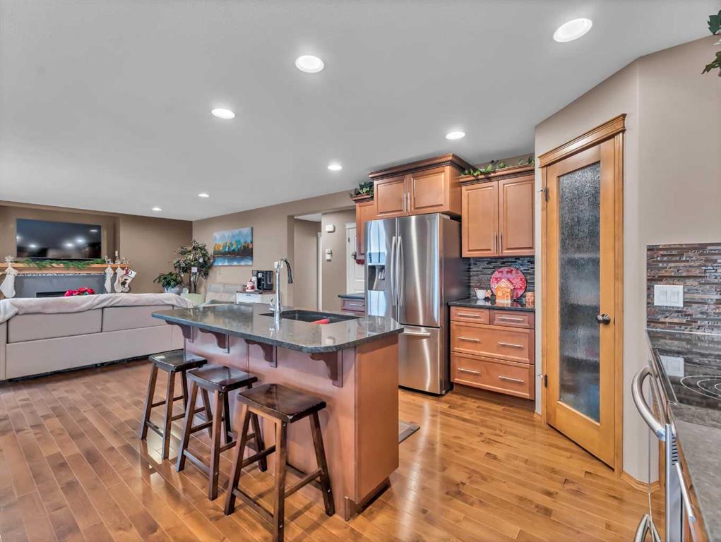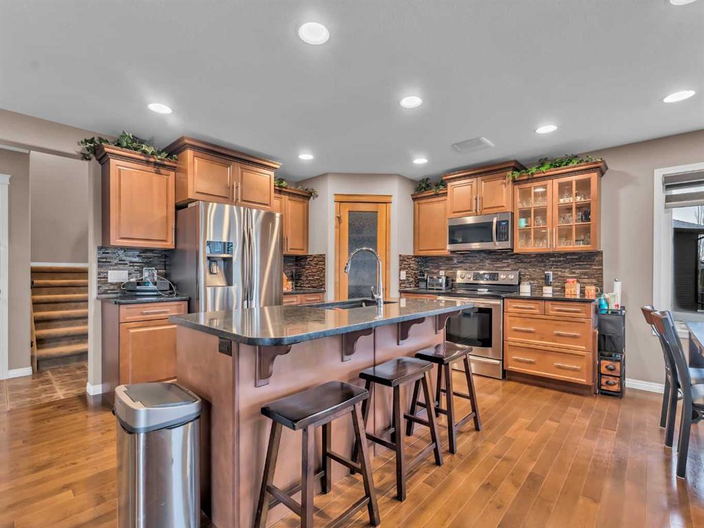 Appreciable fully developed 2-Storey Home in a Quiet Court Location with a nicely landscaped large Pie-Shaped Yard! This quality-built 1,774 sq ft two-storey home offers 4 bedrooms and 3.5 bathrooms and is beautifully finished with flow throughout. The spacious tiled front entry welcomes you into an open-concept main floor featuring hardwood floors, a bright living room with a gas fireplace, and a functional kitchen complete with maple cabinetry, granite countertops, tiled backsplash, pantry, and a kitchen island with seating. Main-floor laundry and a convenient 2-piece bathroom complete this level and provide direct access to the heated, insulated, fully finished double garage. Upstairs you’ll find three generously sized bedrooms, including a spacious primary retreat with a large walk-in closet and a lovely 5-piece ensuite featuring dual sinks. A full 4-piece bathroom completes the upper level. The basement is fully finished and offers a large family room with oversized windows, a completed fourth bedroom, a flex space and a luxurious bathroom with a custom walk in shower —perfect for growing families or guests. Outside, enjoy the maintenance-free covered deck with a gas line for your BBQ and privacy shade while the kids play in the large pie-shaped yard, complete with concrete curbing, vinyl fencing, underground sprinklers, a relaxation zone with a hot tub and gazebo and RV parking is available through a custom 18’ gate off the paved alley, with 20-amp service and water hookups—ideal for outdoor enthusiasts. Located in a quiet Southland court close to parks, shopping, schools and many other attractive amenities, this home truly has it all.
