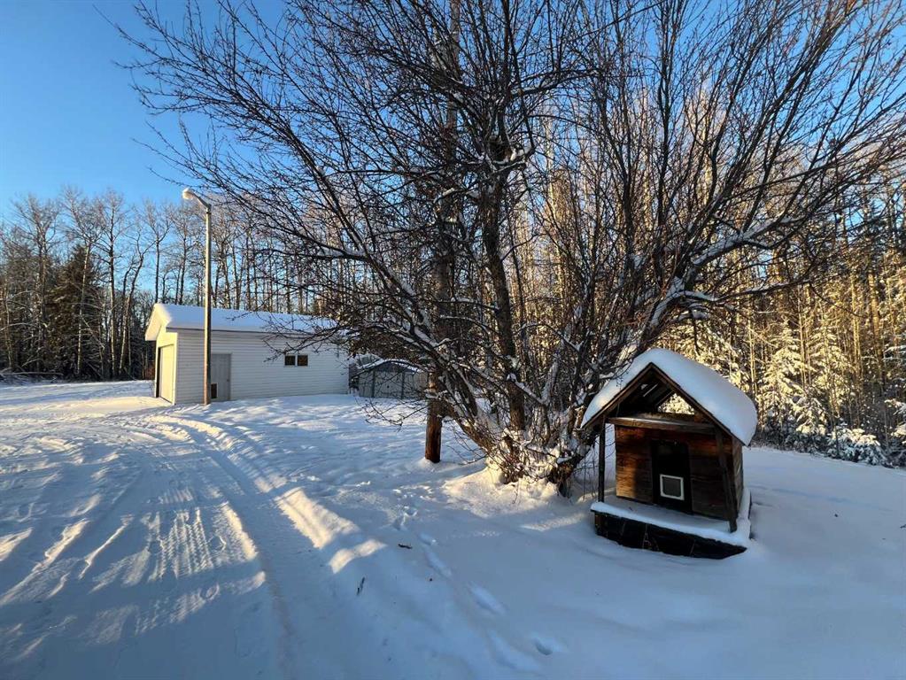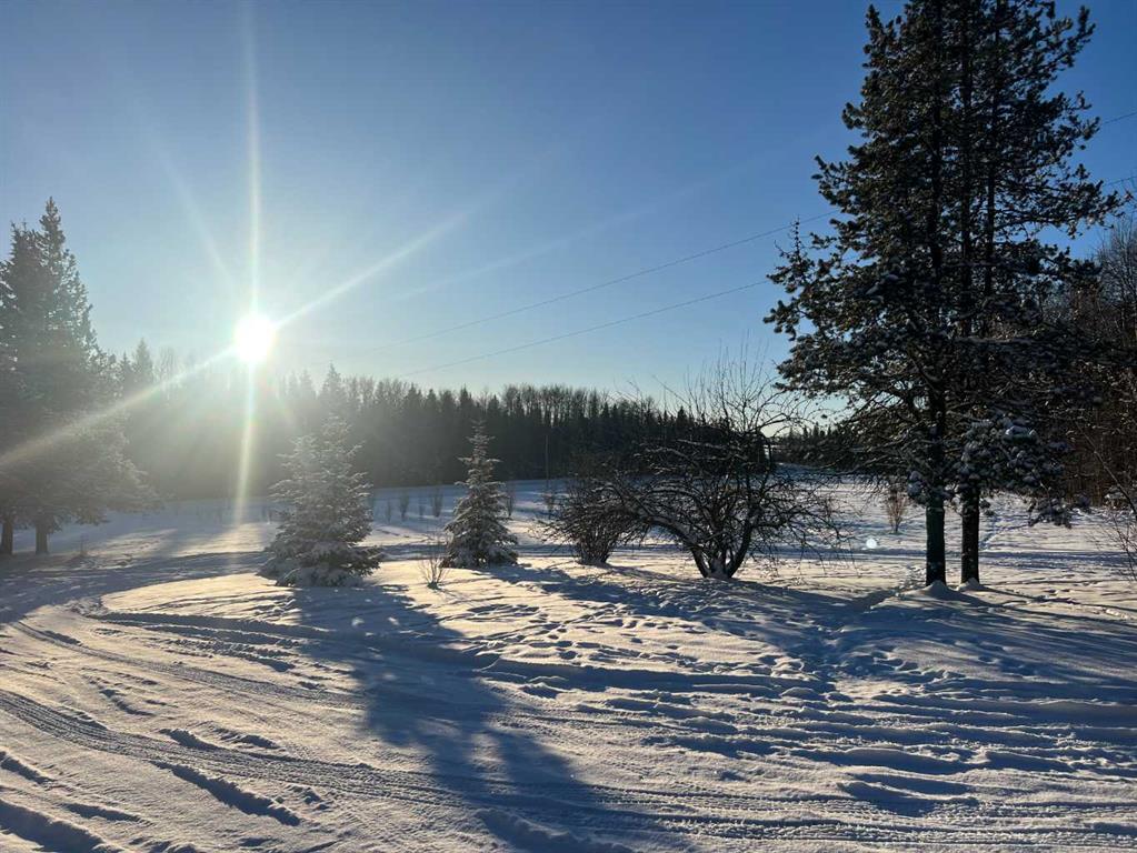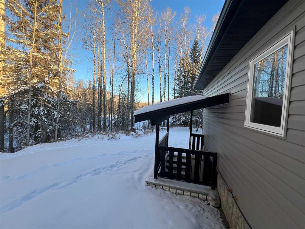 Beautifully renovated bungalow on a picturesque acreage, perfectly blending modern comfort with timeless country charm. Originally built in 1955, this home has been thoughtfully updated throughout, with no known original components remaining. The bright, open-concept layout boasts a spacious living, kitchen, and dining area, three bedrooms—including a primary with 2-piece ensuite—and a stylish 4-piece main bathroom. Interior upgrades feature new flooring, trim, paint, doors, updated kitchen finishes, and contemporary bathroom fixtures. The full, undeveloped basement offers tremendous potential, complete with exterior access, a cold room, and freshly painted floors and walls. Step outside to the impressive wrap-around deck (434 sq. ft.), perfect for entertaining or enjoying peaceful country views. The fully finished detached garage (20x24) is insulated and equipped with vinyl siding, new asphalt shingles, concrete floor, overhead heater, and an overhead door with opener. Additional highlights include a garden shed, a spacious 100’ x 100’ garden area, and meticulously landscaped grounds featuring mature apple, saskatoon, and cherry trees. A large shared pond adds recreational enjoyment and enhances the serene setting. Major improvements include updated windows, a new well installed in summer 2025 with pressure system, upgraded hot water tank, furnace, electrical and new garage shingles in 2025. This turn-key acreage delivers exceptional value, functionality, and a lifestyle that truly embraces the best of country living.