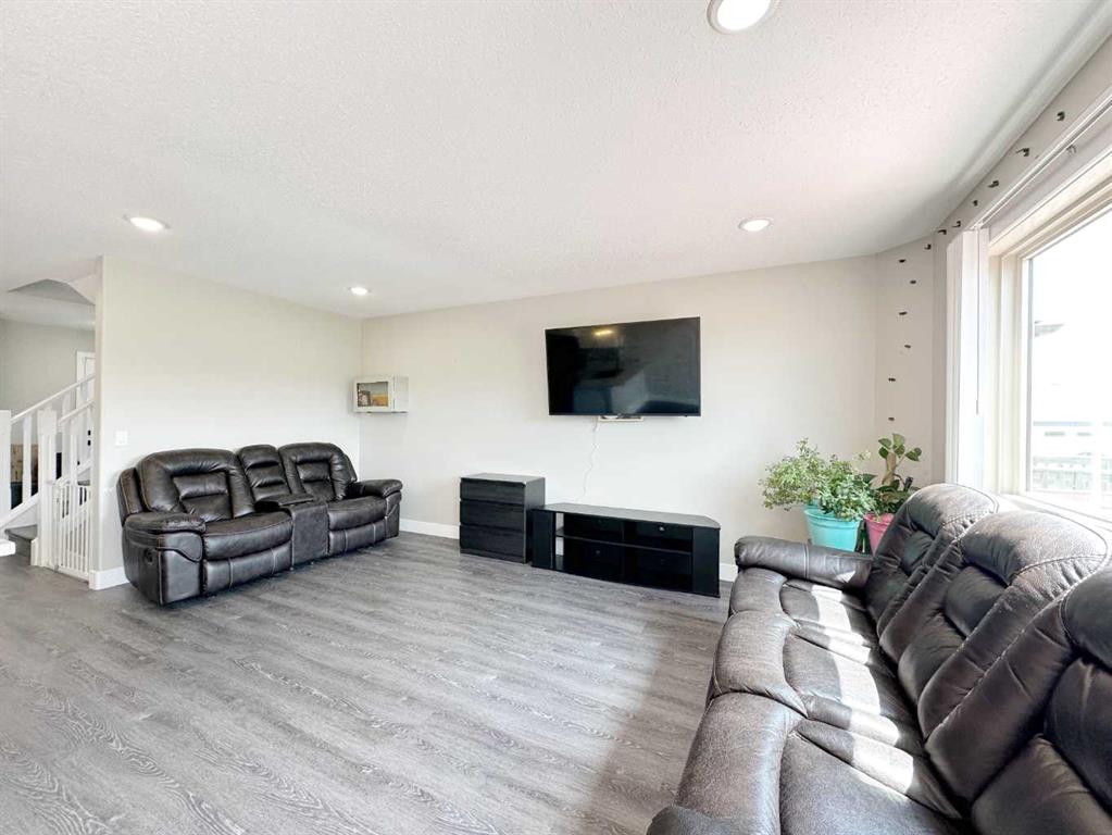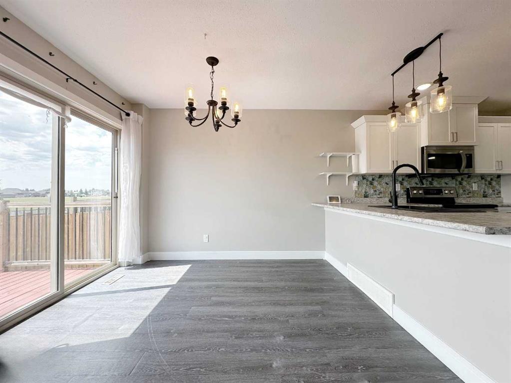 Don’t miss your opportunity to own this stunning, central air-conditioned two-storey home backing onto mature green space and located just steps from scenic walking trails, new school that is currently under construction, and outdoor community ice rink. Boasting a bright and airy open-concept layout, this home features modern finishes throughout, including elegant vinyl plank and tile flooring, a neutral color palette, and stylish hardware and lighting. The thoughtfully designed kitchen offers plenty of cabinetry, a corner pantry, and a functional breakfast bar—perfect for both everyday living and entertaining. The adjoining dining and living rooms are flooded with natural light and open onto a large two-tier deck and fully fenced backyard—ideal for enjoying summer evenings. A convenient 2-piece powder room is located on the main floor for guests, along with direct access to the 16’ x 24’ attached heated garage featuring cozy in-floor heat. Upstairs, you’ll find a luxurious primary suite complete with tray ceiling, in-floor heating, a generous walk-in closet, and a stunning 4-piece ensuite featuring dual sinks and a 5-foot walk-in shower. Enjoy views of the evening sky and northern lights right from your window. Two additional bedrooms, a 4-piece bath, and a well-placed second-floor laundry room complete the upper level. The fully finished basement offers even more space with in-floor heating, a massive family room, and another full 4-piece bathroom. This home shows like new and is move-in ready—truly a must-see!