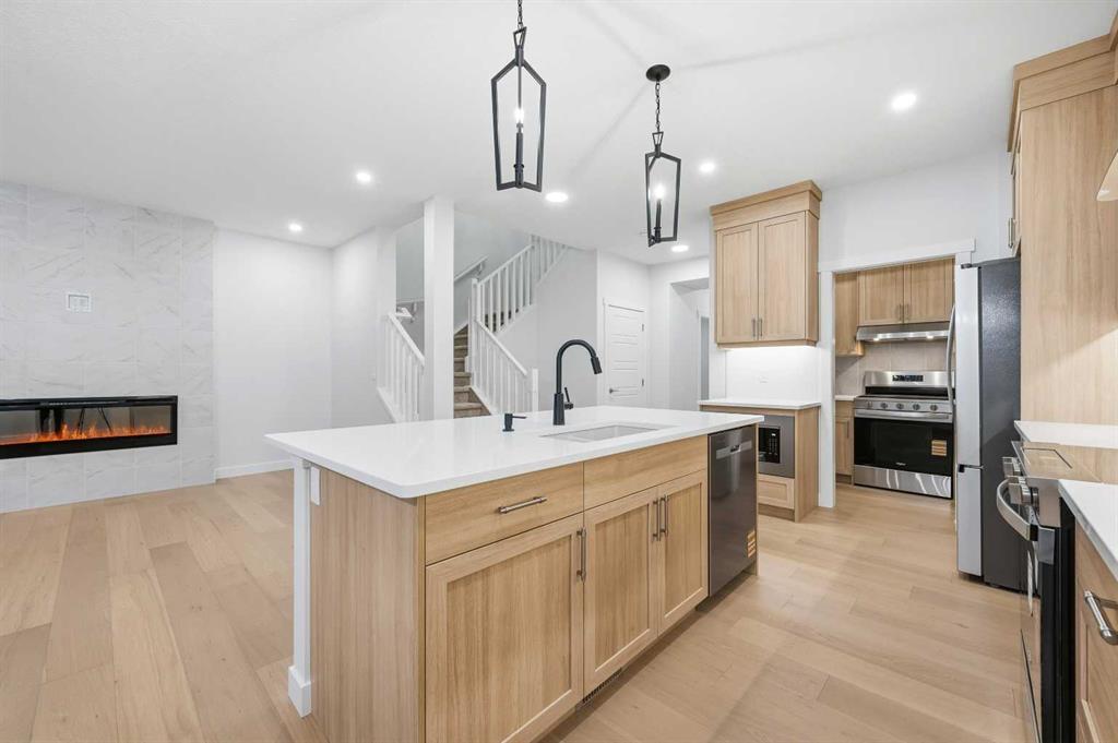 # Virtual Tour # 5 BED 4 FULL BATH | MAIN FLOOR BED ROOM,DEN & FULL BATH | SPICE KITCHEN | SIDE ENTRANCE | 2 MASTER BEDROOMS | Discover amazing value and the perfect blend of luxury and convenience in the sought-after community of Homestead .This 2 story Lawson model built by Trico Homes sits on EXTRA LONG 120 FT LOT and features 2,578 sq ft , 5 bedrooms, 4 full bathrooms, and an attached double garage. Upon Entering, you will be greeted by spacious foyer, a den on the left side and a bedroom on the right with a full Bath. The main level features an open-concept connecting the living room, kitchen, and dining nook. The gourmet kitchen is a chef\'s dream, with upgraded cabinets, a contrasting island with a convenient eating bar, quartz countertops, and upgraded stainless steel appliances, including an oversized fridge, built-in microwave, and a electric range. Additional highlights include soaring ceilings and a fully equipped SPICE KITCHEN with extra cabinetry, a GAS stove, and a sink. Vinyl plank flooring runs throughout the main floor for a sleek look. The great room offers ELECTRIC FIREPLACE wrapped around Tiles and sliding patio doors leading to a backyard. Upstairs, the open staircase with railing leads to a generously sized bonus room, 4large bedrooms Including 2 MASTER BEDROOMS , laundry room and 3 full bath. The master bedroom includes a walk-in closet and a luxurious 5-piece ensuite. Basement comes with a side entrance, 9 ft ceiling, 2 large egress windows, tankless hot water and a lot more. High-end finishes such as upgraded tile, lighting, and countertops elevate the home’s interior. Beyond the home itself, the community of Homestead is growing fast and smart—with major future amenities already approved, including two brand-new schools, a cricket pitch, a 3-acre community association site, a soccer field, pickleball and basketball courts, plus parks, ponds, and a 19-acre environmental wetland complete with a sheltered gazebo and over 4 kms of connected walking paths. This is a neighborhood built with lifestyle, recreation, and long-term value in mind—making it one of Calgary’s most exciting and well-planned new developments. This is more than a home—it’s a long-term investment in one of Calgary’s most promising, family-focused communities.