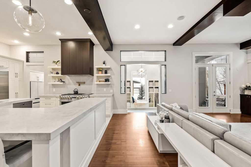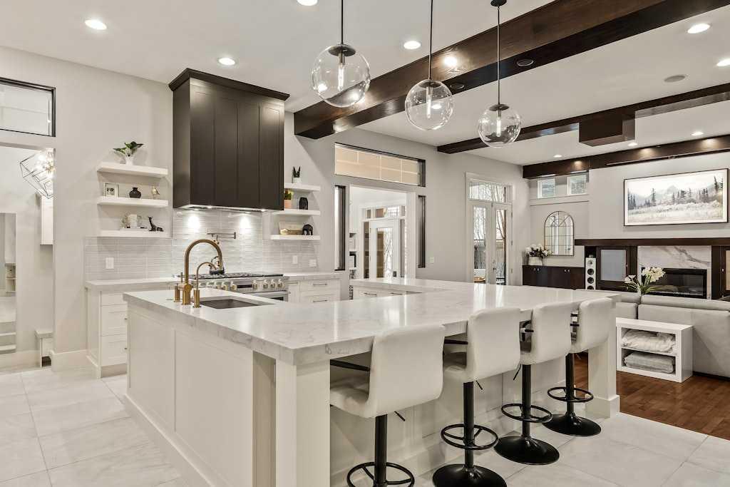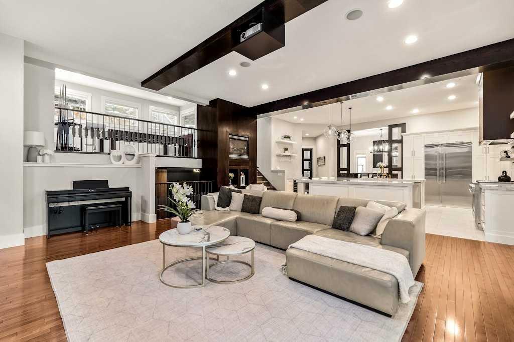 Extensively renovated and impeccably appointed, this architecturally striking five-level split is positioned on a quiet cul-de-sac in Signal Hill, offering almost 3,500sqft above grade and over 5,500sqft total, on a multi-tiered pie shaped lot with multiple outdoor living areas and mountain views. The heart of the home is a the huge custom created kitchen which has been thoughtfully renovated and designed with extensive built-ins, premium stone countertops with a 2.5\" mitre edge, and a high-end appliance package including a 48\" Monogram gas range, Miele dishwasher, separate built-in JennAir refrigerator and freezer units. A dedicated wine bar with custom cabinetry, new countertops, built-in wine fridge, floating shelves, and hanging wine rack seamlessly connects the kitchen to the dining and living spaces, making it ideal for both everyday living and entertaining. The main living areas are enhanced by custom millwork, updated lighting, and a new fireplace with tile surround, while the dining room features custom built-in cabinetry and lighting. The main floor also features a large private office, tastefully designed powder room, the spacious welcoming foyer, huge mudroom and access to the oversized attached garage. Ceiling heights add to the sense of scale, with approximately 13ft ceilings in the entry, 11ft ceilings on the main level, and 9ft ceilings in the basement. The upper level is anchored by a spacious primary retreat with coffee bar, two walk-in closets full of built-ins, access to the rooftop patio showcasing mountain views, and the ensuite complete with oversized double headed steam shower, dual vanity, heated tile, extra deep soaker tub and designated hair/makeup vanity. Two spacious additional bedrooms, connected by a jack-and-jill bathroom, as well as one of two laundry rooms complete this level. The basement rec room is wide-open and large enough to accommodate the needs of almost anything you can imagine, while still offering a designated gym space, arts&craft room, teen bedroom with its own hangout space, full bathroom, second laundry room and seemingly endless storage space. Practical upgrades include; Hunter Douglas blinds throughout, a radon mitigation system installed in 2022, a new furnace (2024), recently refinished roof top balcony with new TufDek waterproof vinyl decking and the addition of a new 8’ x 8’ patio door enhance flow to the huge outdoor space off the upper living/flex room. Outdoor living is a standout feature, offering multiple exterior spaces including a front porch with gas hookup, oversized entertaining deck, rooftop deck, fenced grass yard, and dedicated dog run. Located close to schools, parks, shopping, and westside amenities, this home represents a rare opportunity to own an extensively renovated, move-in-ready property in one of Calgary’s most established communities.