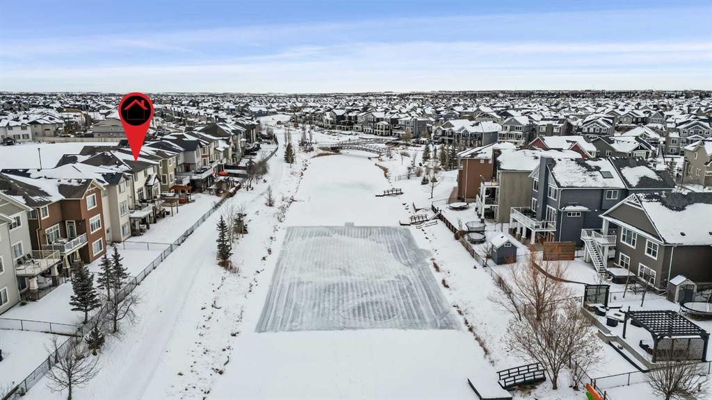 Welcome to Bayside, where a true village atmosphere defines everyday living and community comes first. Here, neighbours gather, children play freely, and winter ice rinks become a shared tradition for all to enjoy. In the summer enjoy paddle boarding and kayaking in your own back yard. This beautifully maintained, air conditioned home has been thoughtfully cared for and is ready to welcome its next family. With 4 beds, 3.5 baths, and more than 3,500 sq ft of developed living space, this home has space for everyone. The main floor offers an exceptional open-concept layout featuring a stunning kitchen, living area, and breakfast nook designed for both daily living and effortless entertaining. Granite countertops, upgraded stainless steel appliances, an abundance of cabinetry, an oversized island with seating space, and an included wine fridge create a space that is as functional as it is inviting. Soaring ceilings and expansive windows overlooking the canal are perfectly complemented by a gas fireplace, creating a warm and elegant backdrop. This level also includes a formal dining room, a spacious den, a convenient half bath, and a mudroom with walk-through pantry access, ideal for seamless organization. Upstairs, the home continues to impress with an oversized bonus room perfect for movie nights or relaxing gatherings. The large primary retreat, accessed through French doors, features a spa-inspired five-piece ensuite with jetted tub and separate shower, along with a spacious walk-in closet. Two additional generously sized bedrooms and a four-piece bath complete this level. Originally designed with four bedrooms up and main-floor laundry, one upper bedroom has been converted into an exceptional laundry room, with the option to easily revert back to a five-bedroom layout as original hookups remain. The professionally developed lower level offers a private bedroom for guests or teens, a three-piece bath, ample storage, a wet bar, and a show-stopping recreation room with Dolby 7.1 wiring and built in ceiling speakers. This level has walk-out access to a concrete patio overlooking the canal. An additional poured concrete pad with cedar pergola and hot tub rough-in adds even more outdoor potential. Additional highlights include central air conditioning, refreshed paint throughout the main and upper levels, and evident pride of ownership throughout. Backing onto the canal and facing greenspace, soccer fields, and ball diamonds, the home also benefits from additional parking options and endless family-friendly recreation. Nose Creek Elementary is just steps from the front door, with parks, pathways, shopping, and amenities close at hand. Bayside remains one of Airdrie’s most sought-after communities—this is a move-in-ready home offering exceptional lifestyle and value.